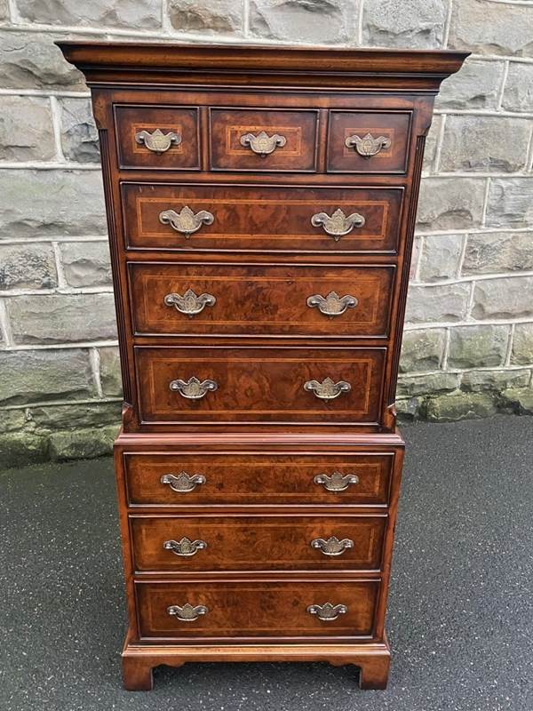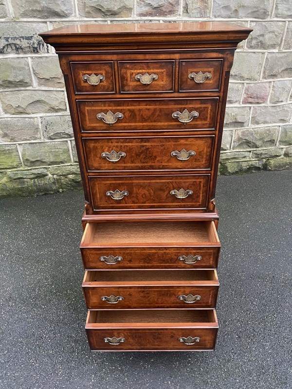 Quality Inlaid Burr Walnut Chest On Chest Tallboy