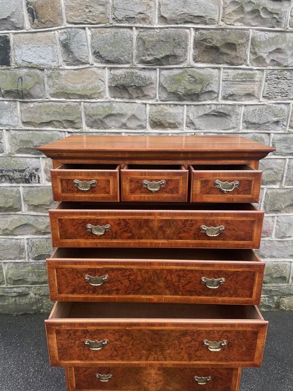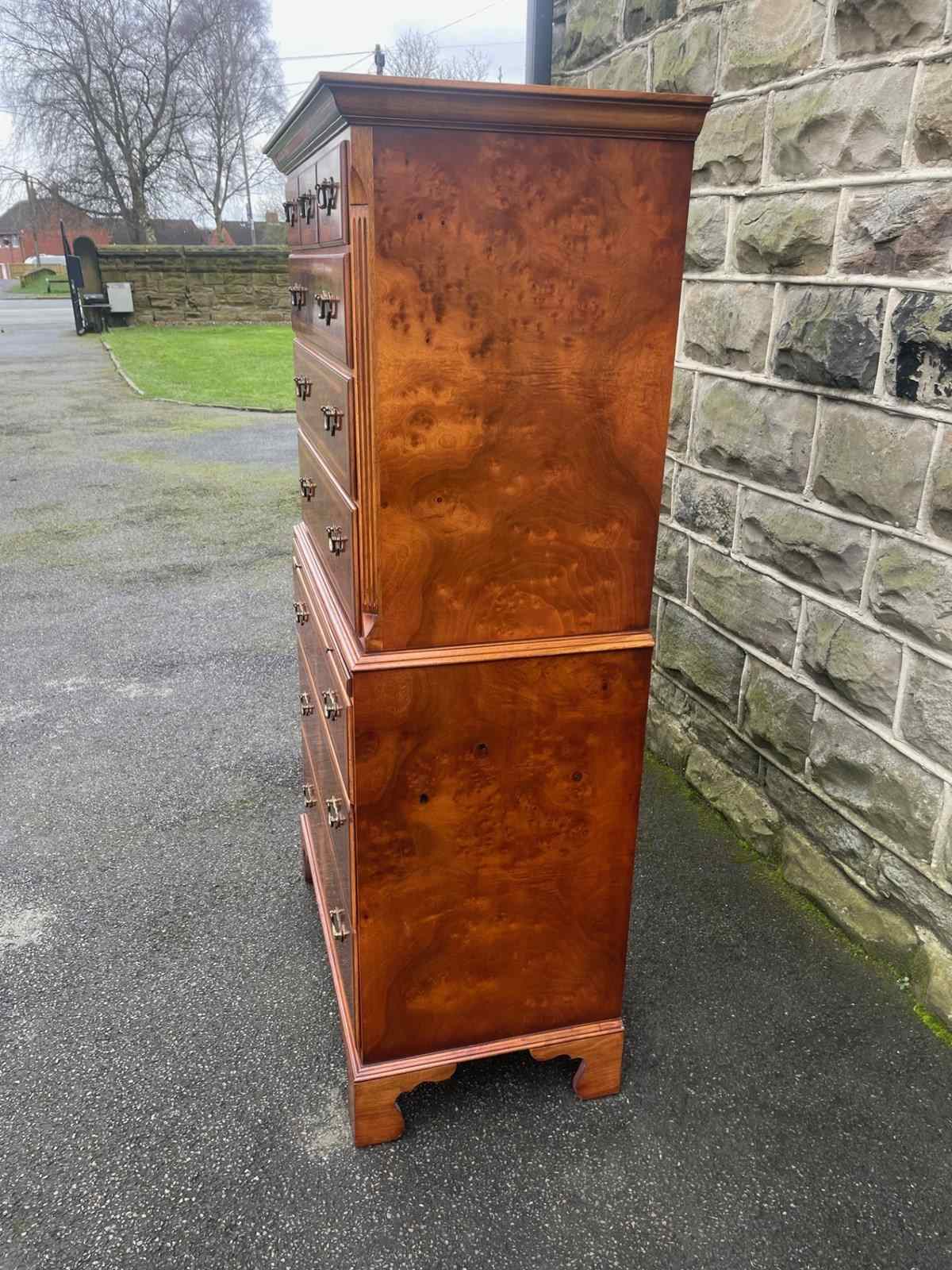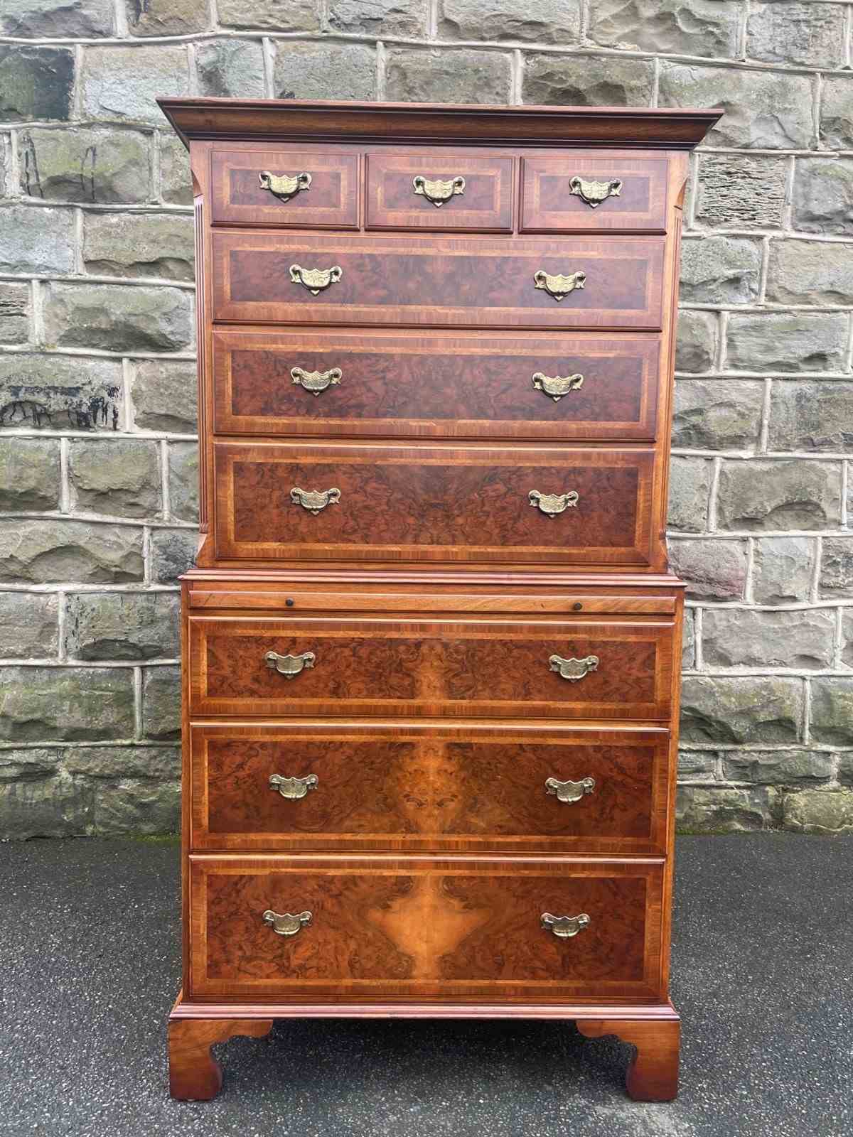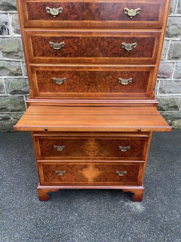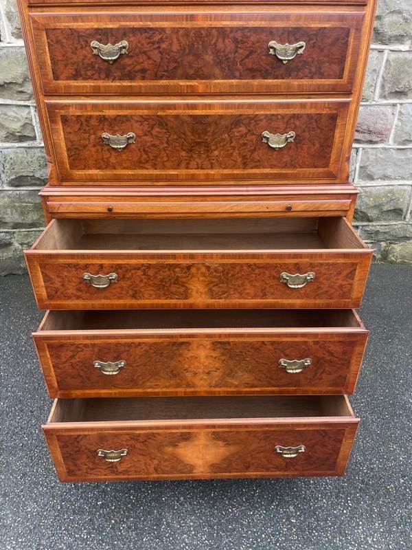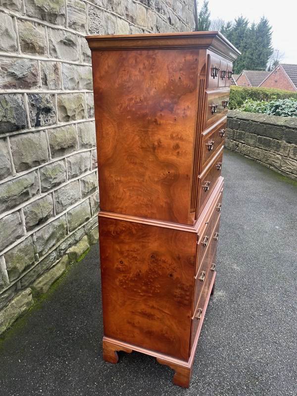 Quality Inlaid Burr Walnut Chest On Chest Tallboy