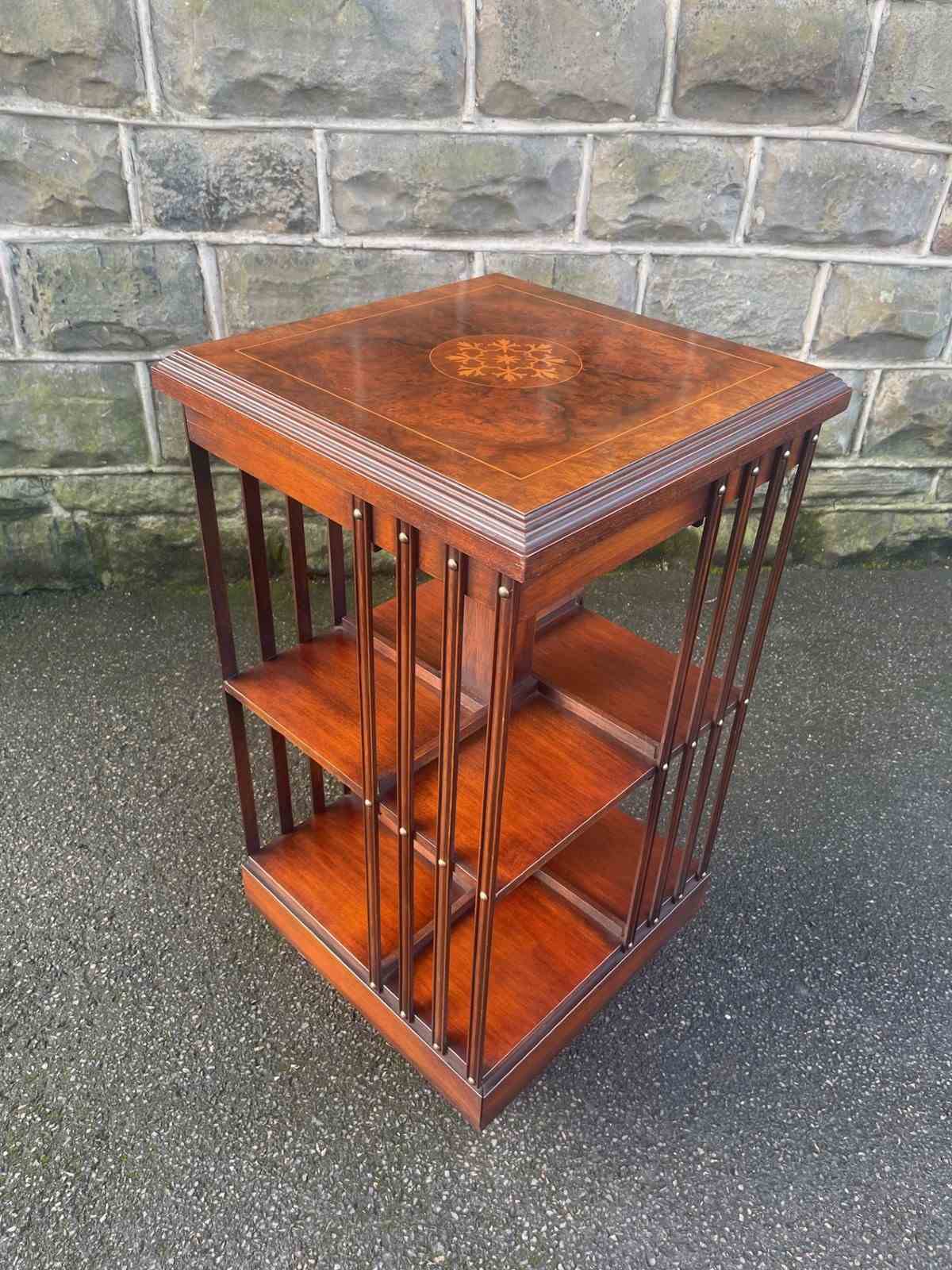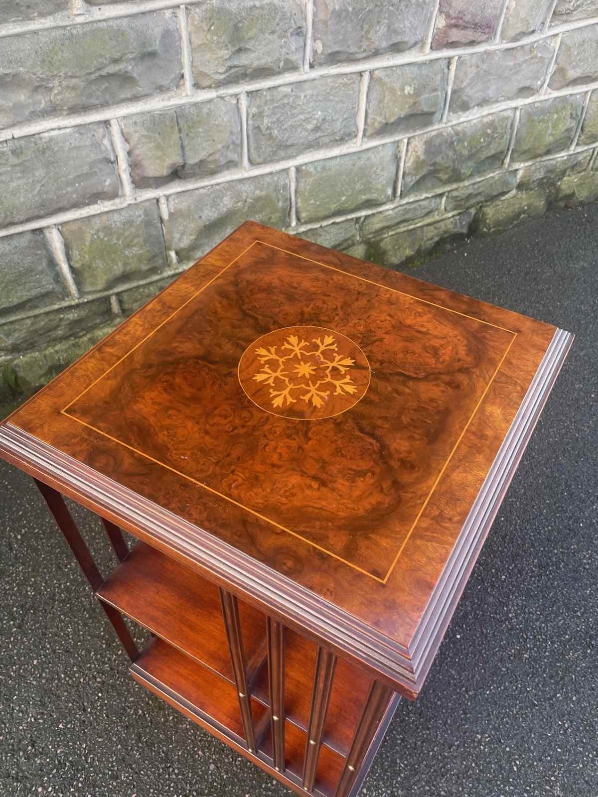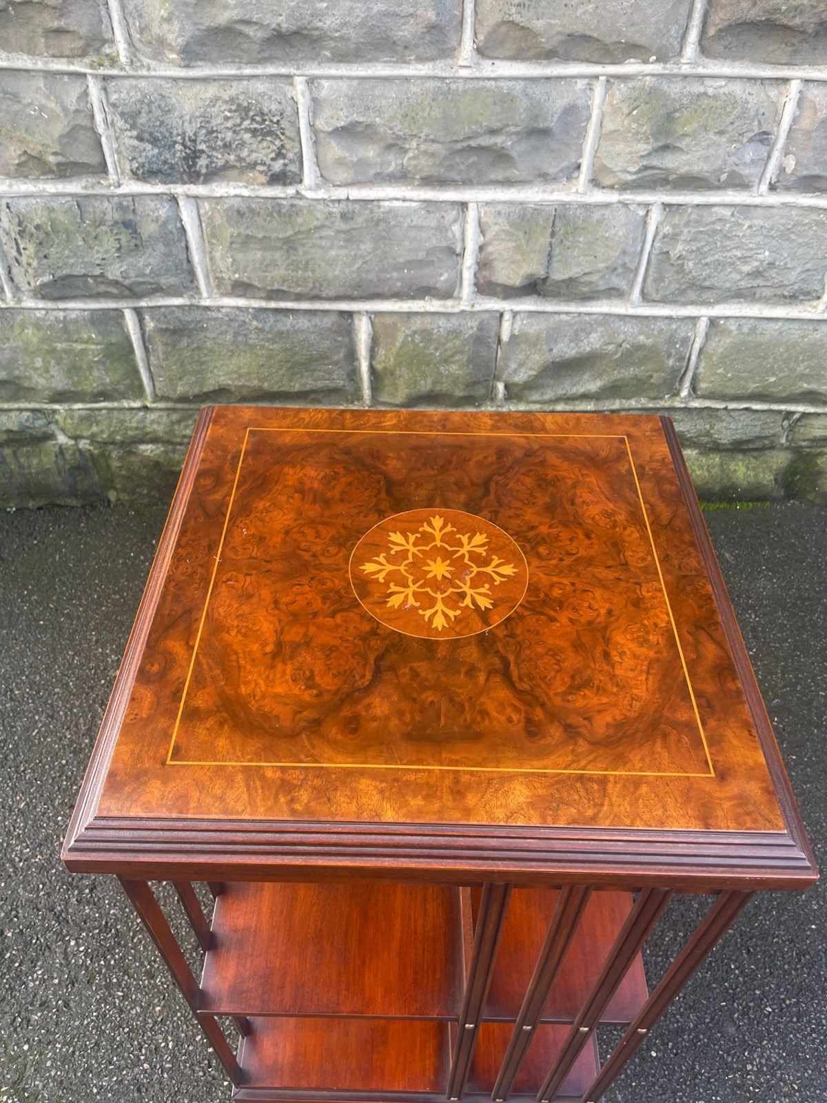 Quality Inlaid Burr Walnut Revolving Library Bookcase