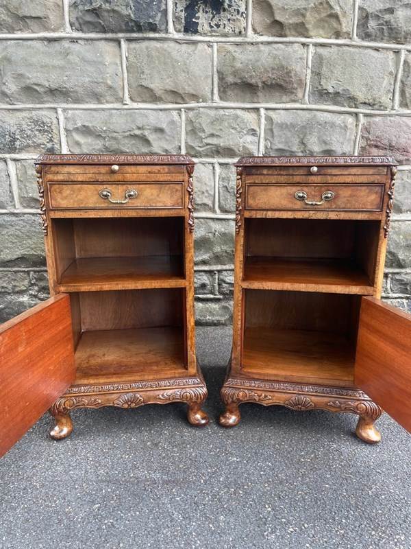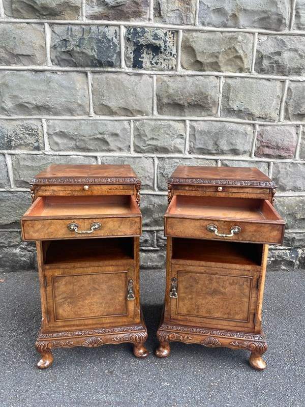 Quality Pair Burr Walnut Bedside Cabinets