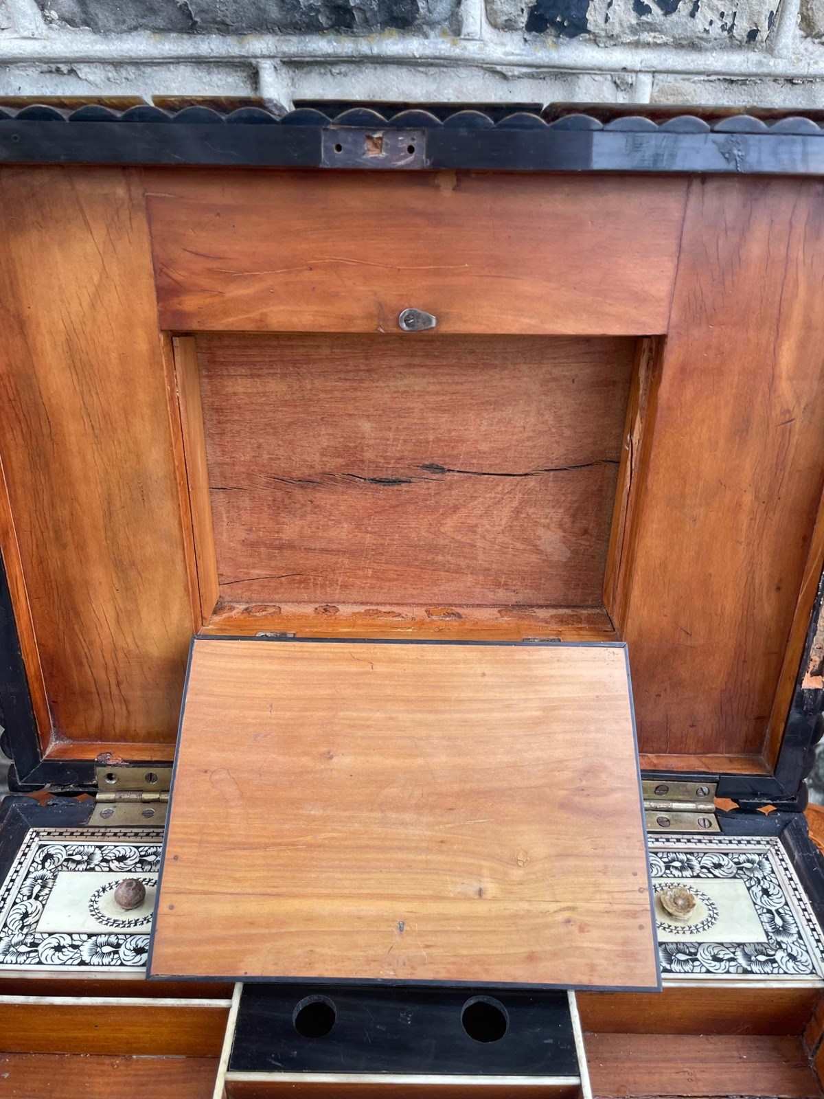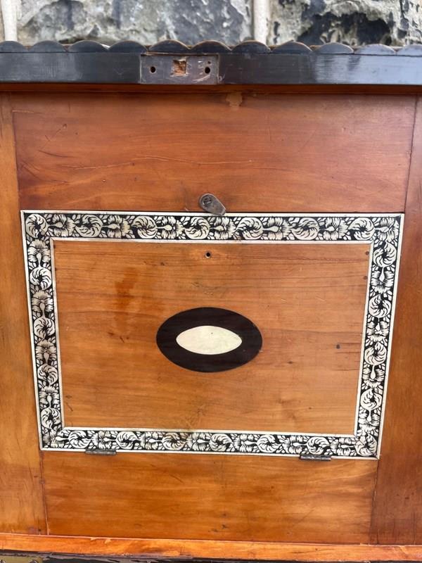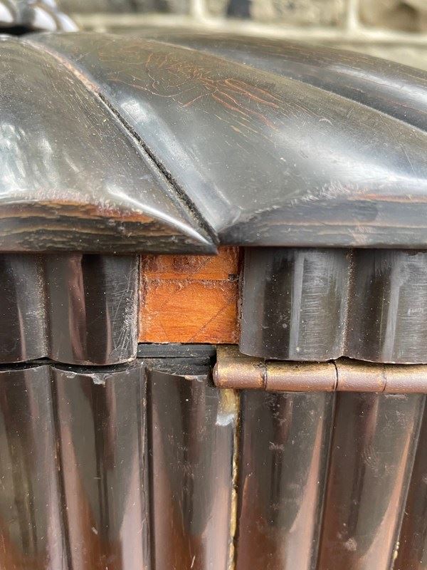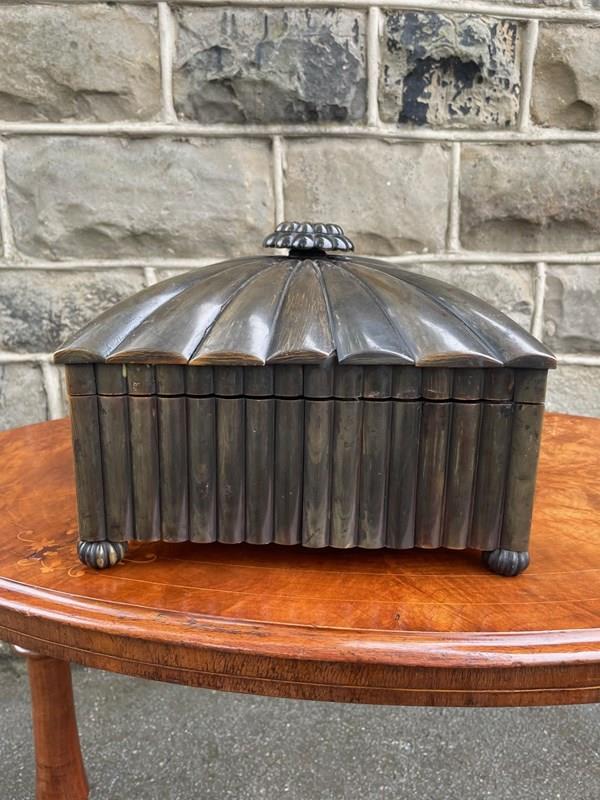 Offered for sale is this rare antique regency horn work box.