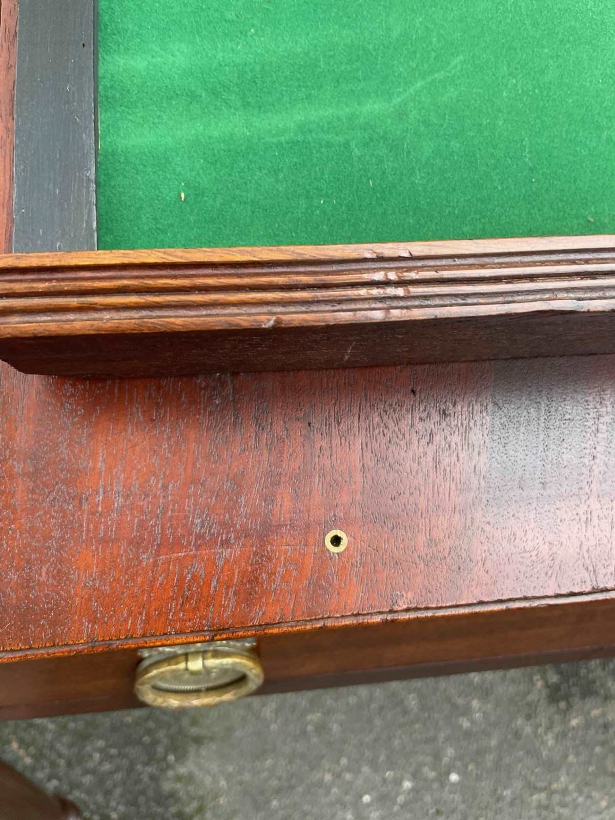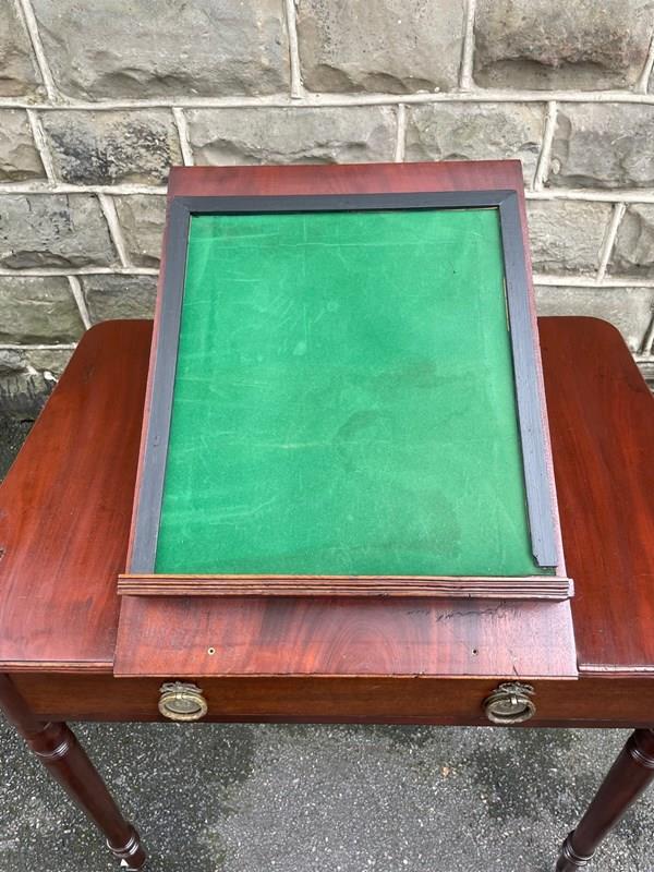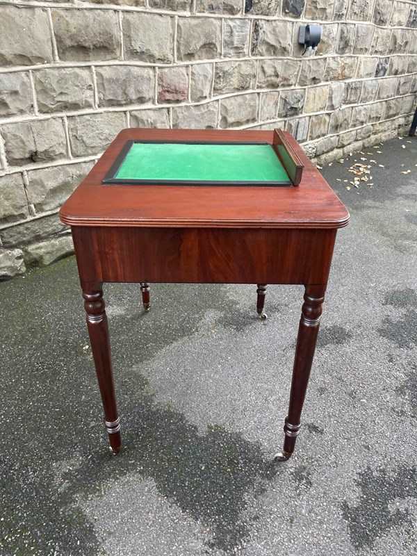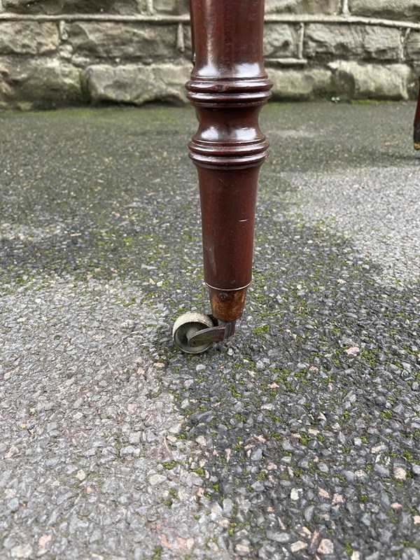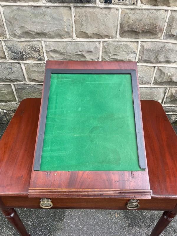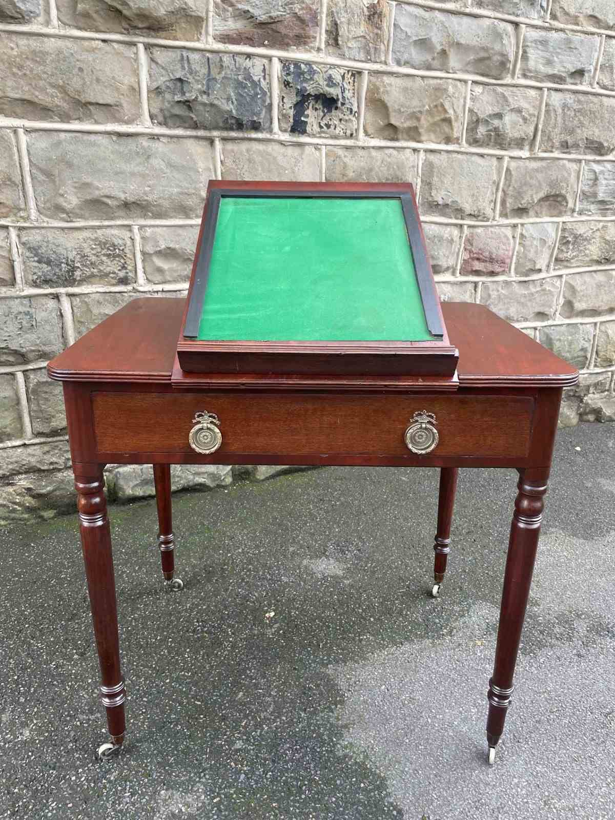 Lovely size & proportions . In mahogany having a central adjustable reading lectern with easel back to change the desired angle. Ornate brass handles on opposing dummy draws, standing on turned mahogany legs with brass castors.