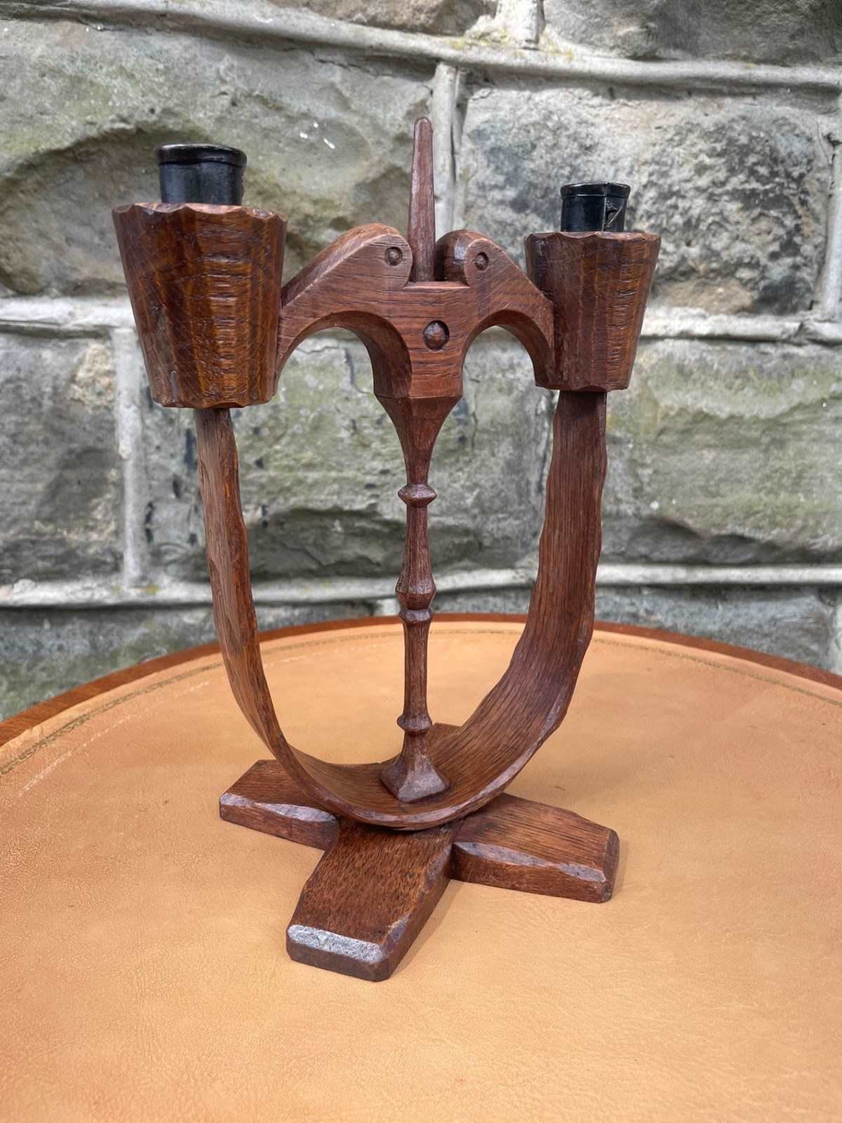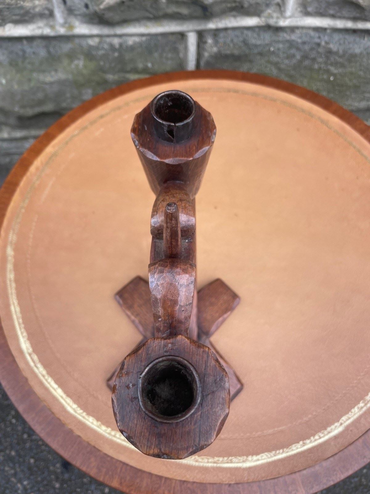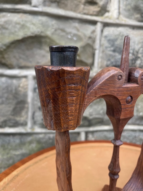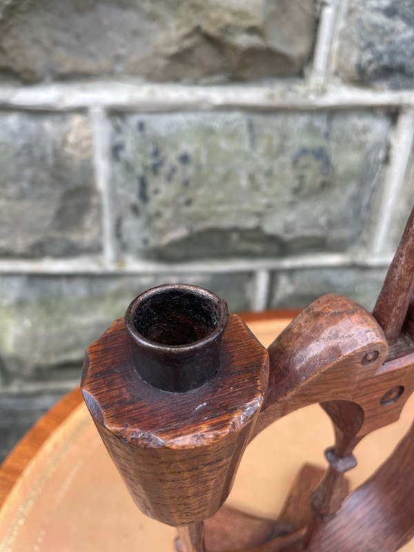 Unusual Adzed Oak Candle Stick Manner Robert Mouseman Thompson