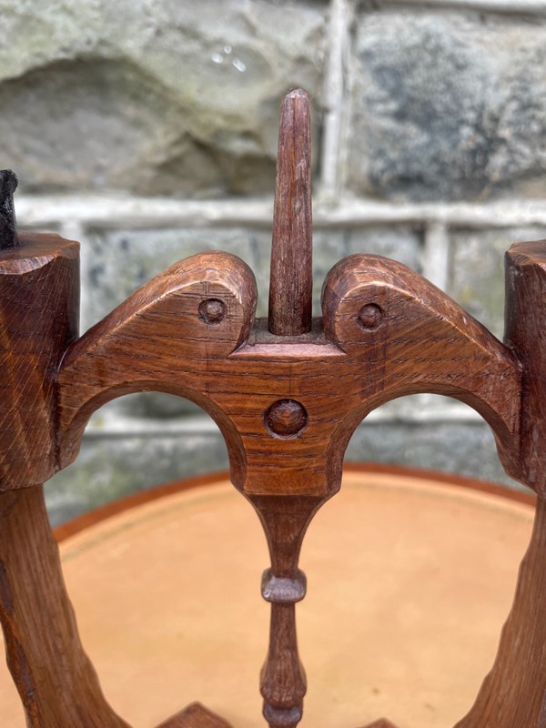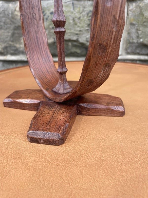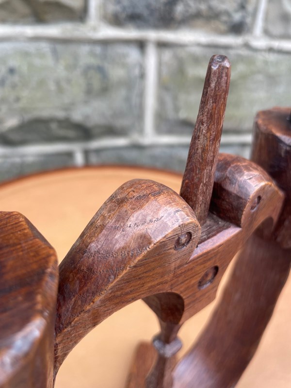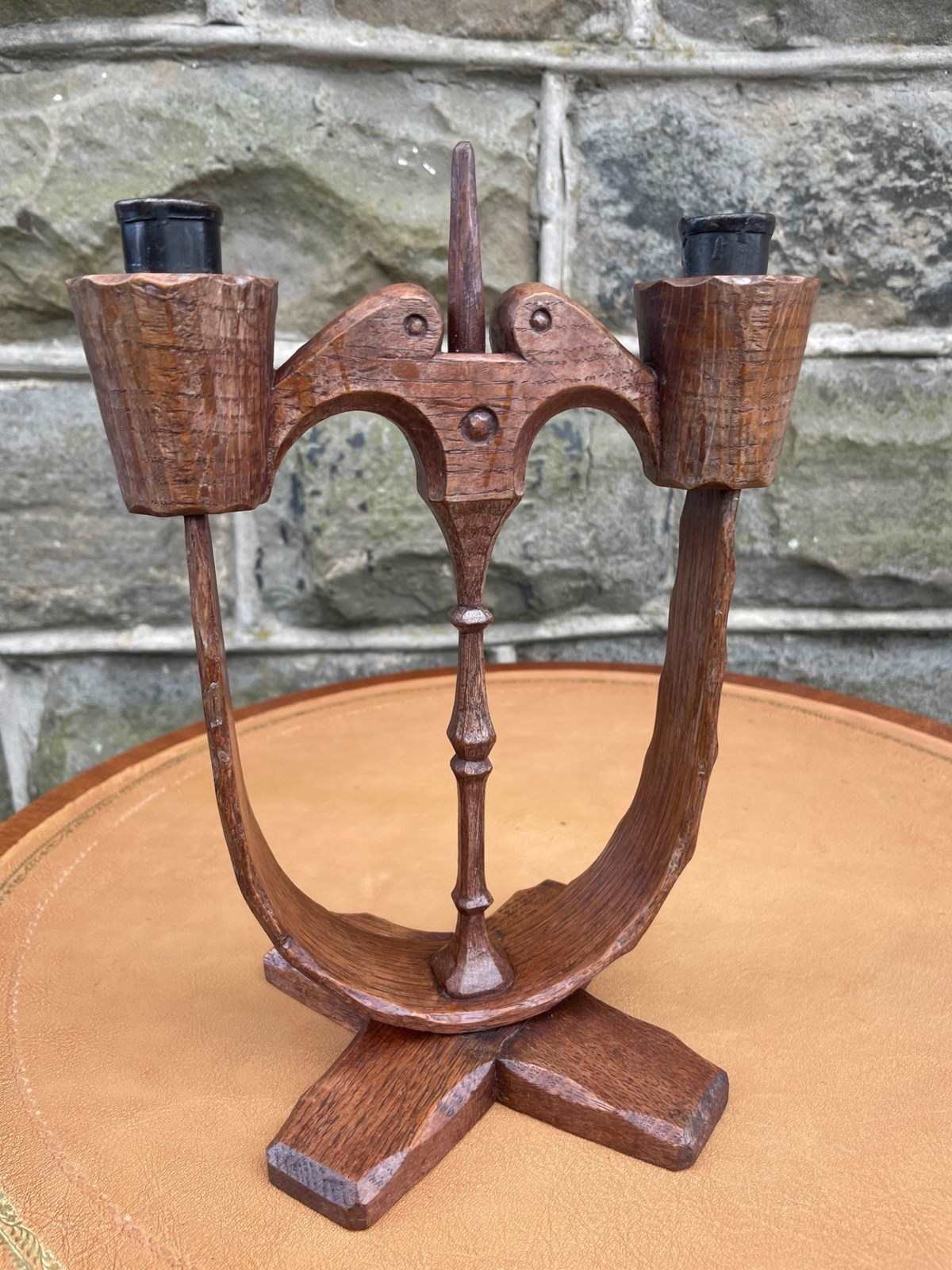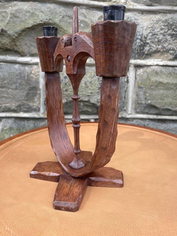 Unusual Adzed Oak Candle Stick Manner Robert Mouseman Thompson