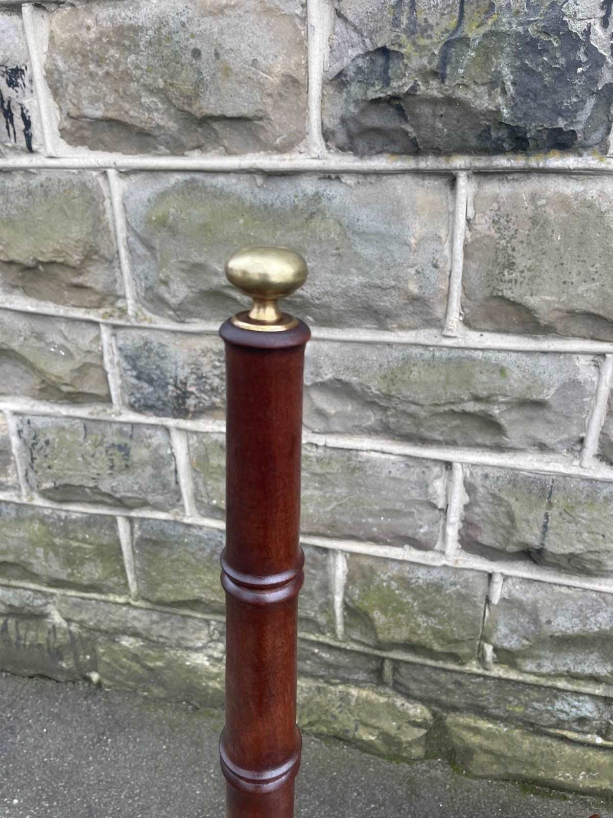 In mahogany having inset tooled leather steps, turned handle standing on turned feet. Floor to top step height 63cm