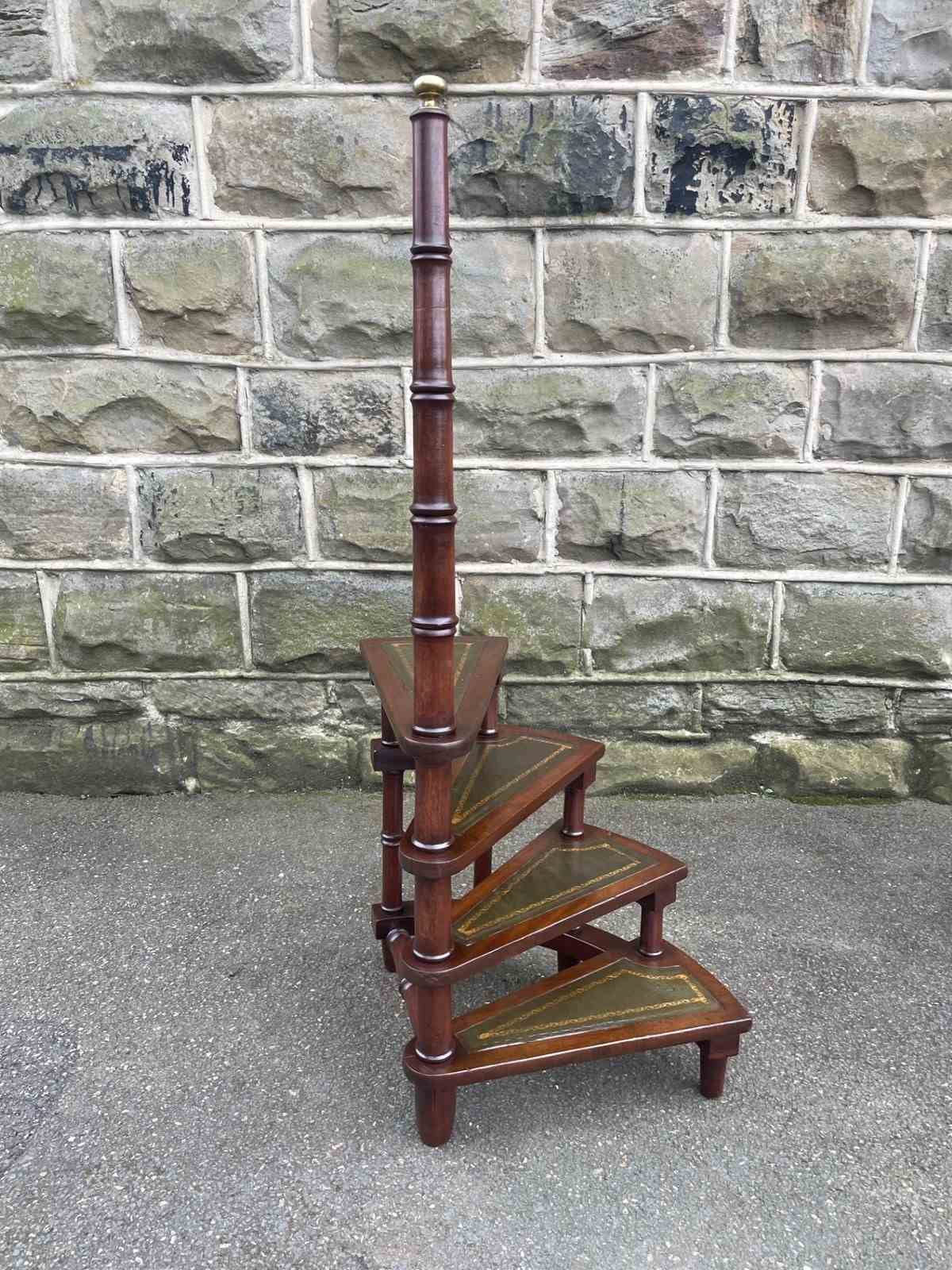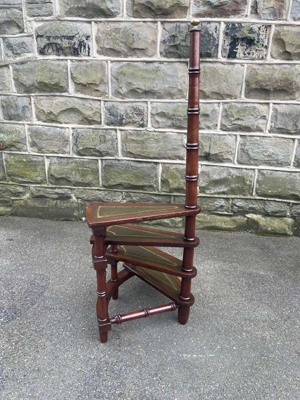 Vintage Mahogany Spiral Library Steps