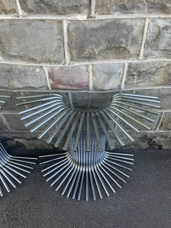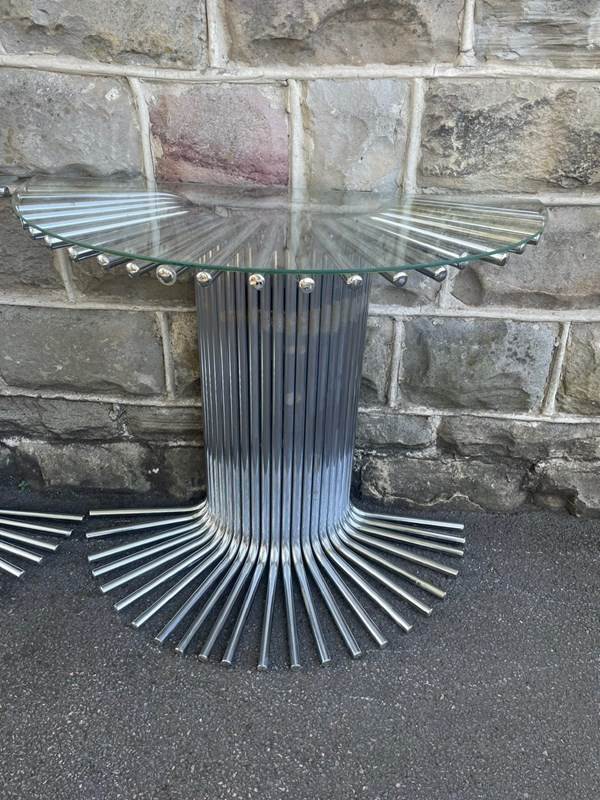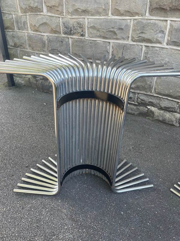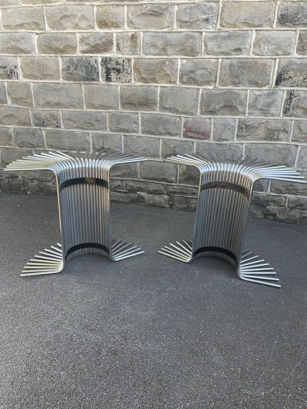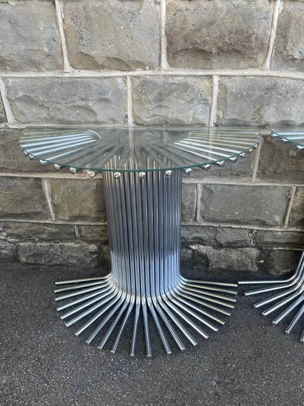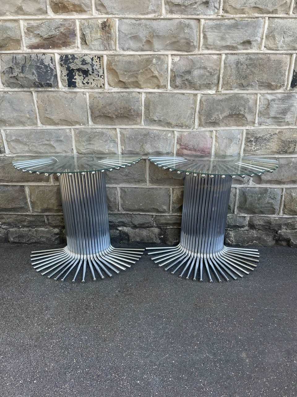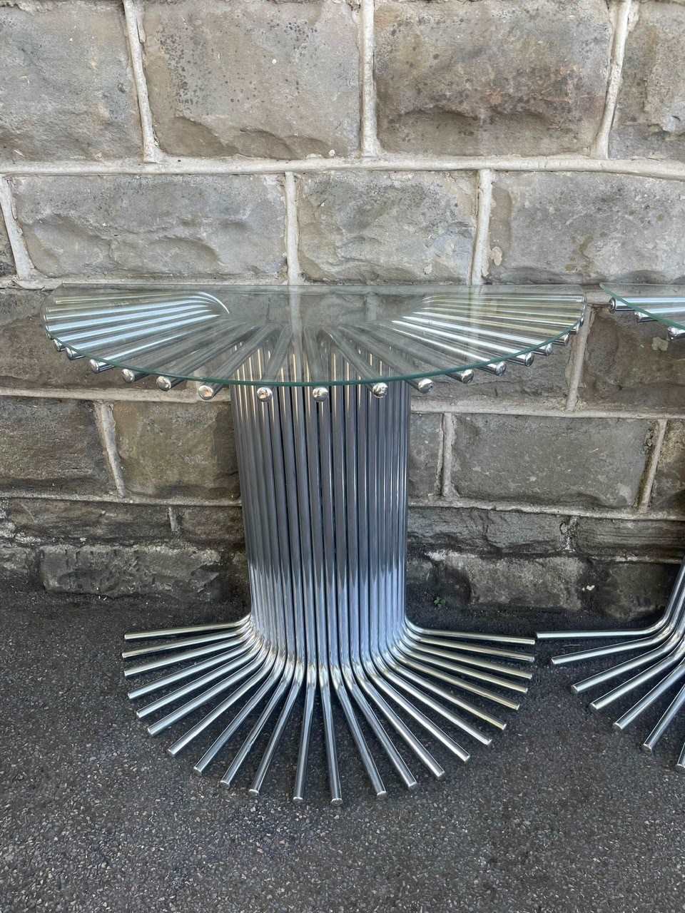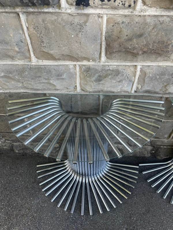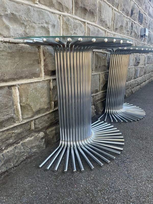 Vintage Mid Century Pair Tubular Chrome Console Tables