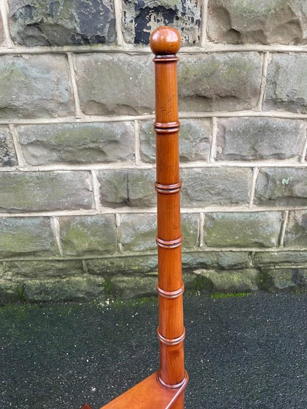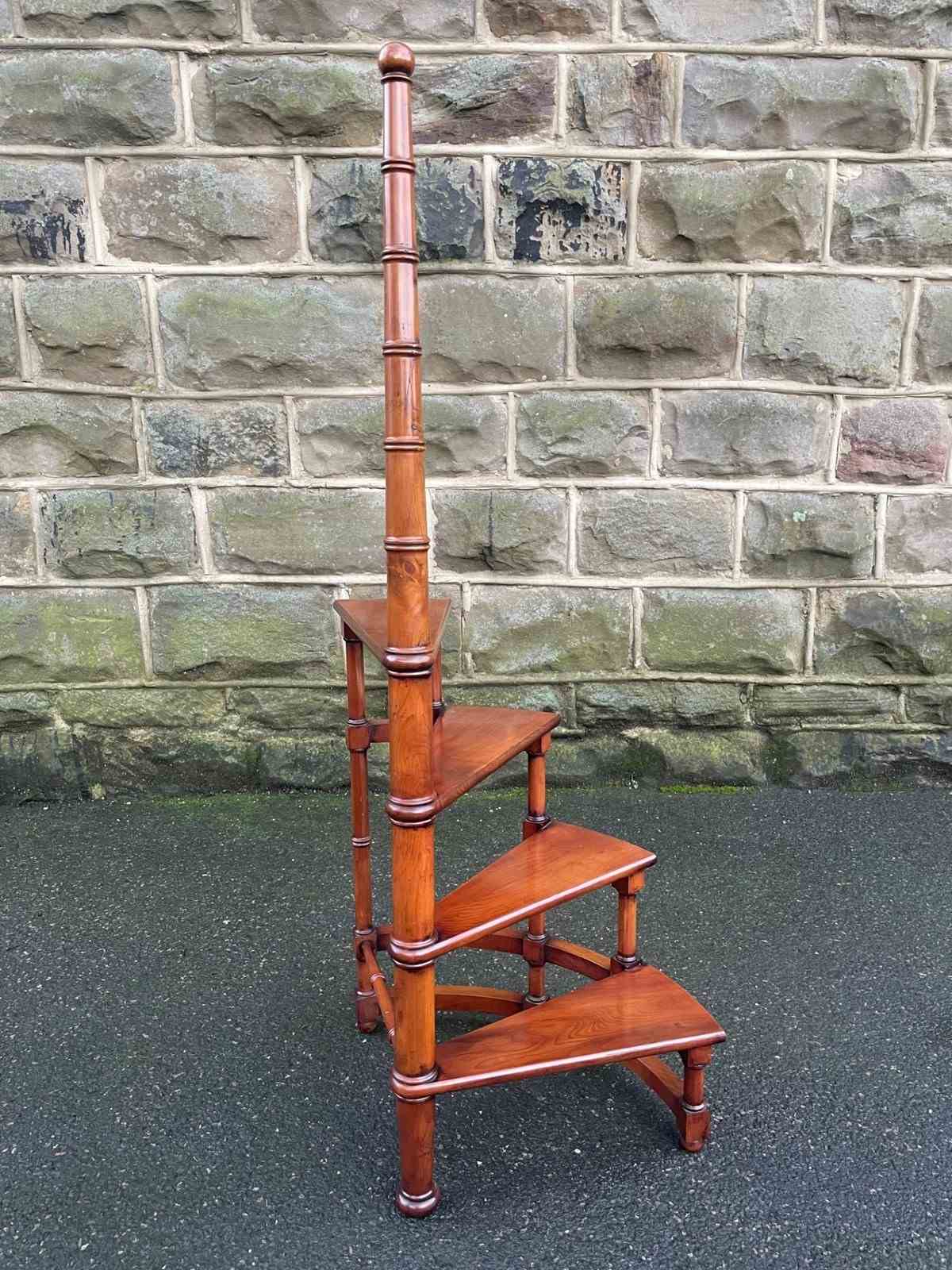 In yew wood having turned handle standing on turned feet. Floor to top step height 63cm