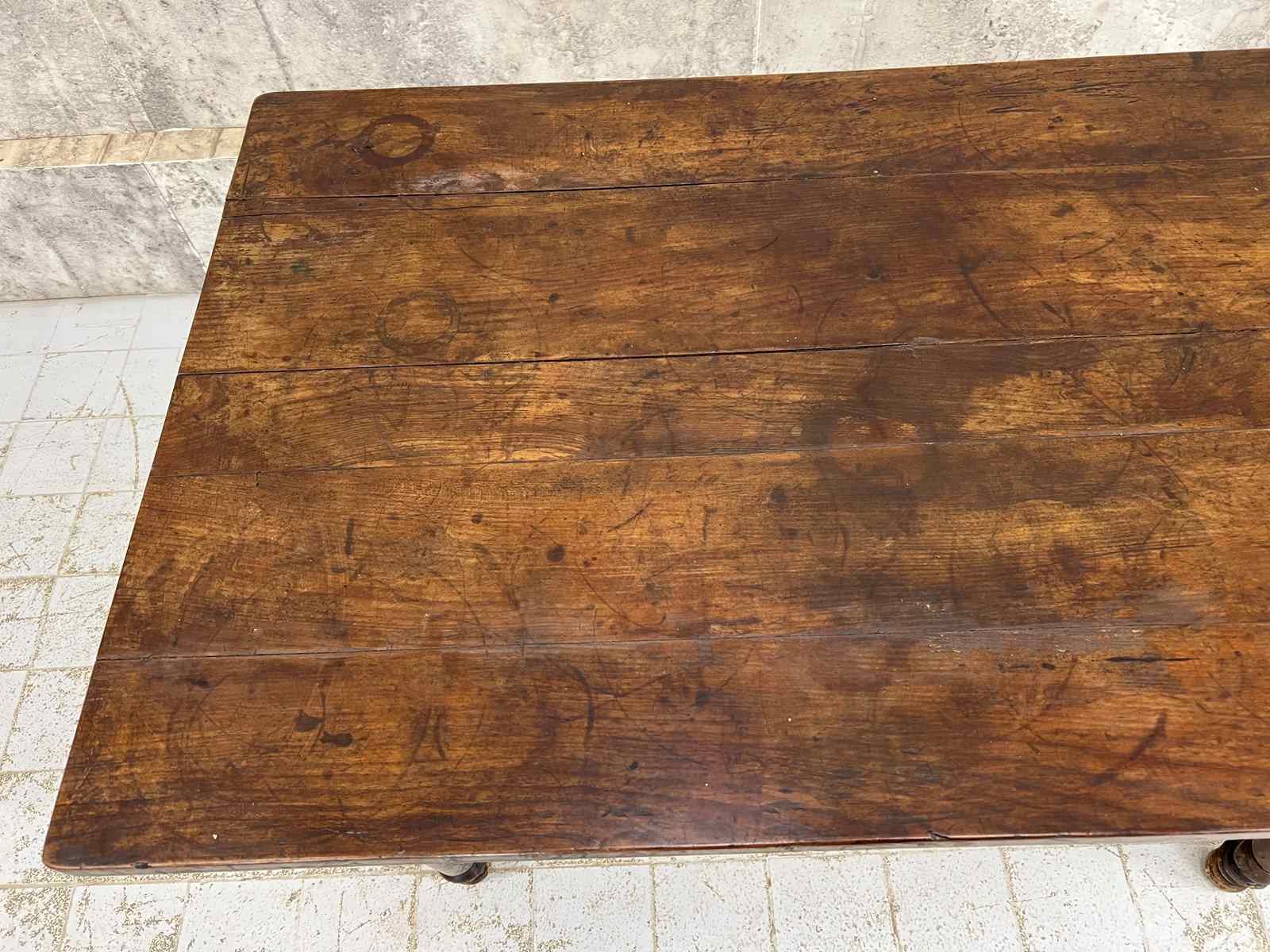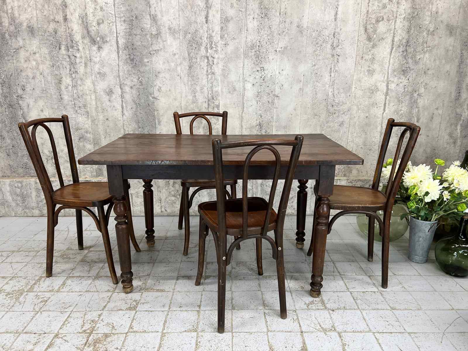 A classic and traditional French Bistro table with beautiful wooden turned legs and the table top has the most beautiful patina. In excellent ready to use condition for a bistro, bar or restaurant.. or even for a work space as a desk. Can seat 4 comfortably or 6 at a squeeze if required.