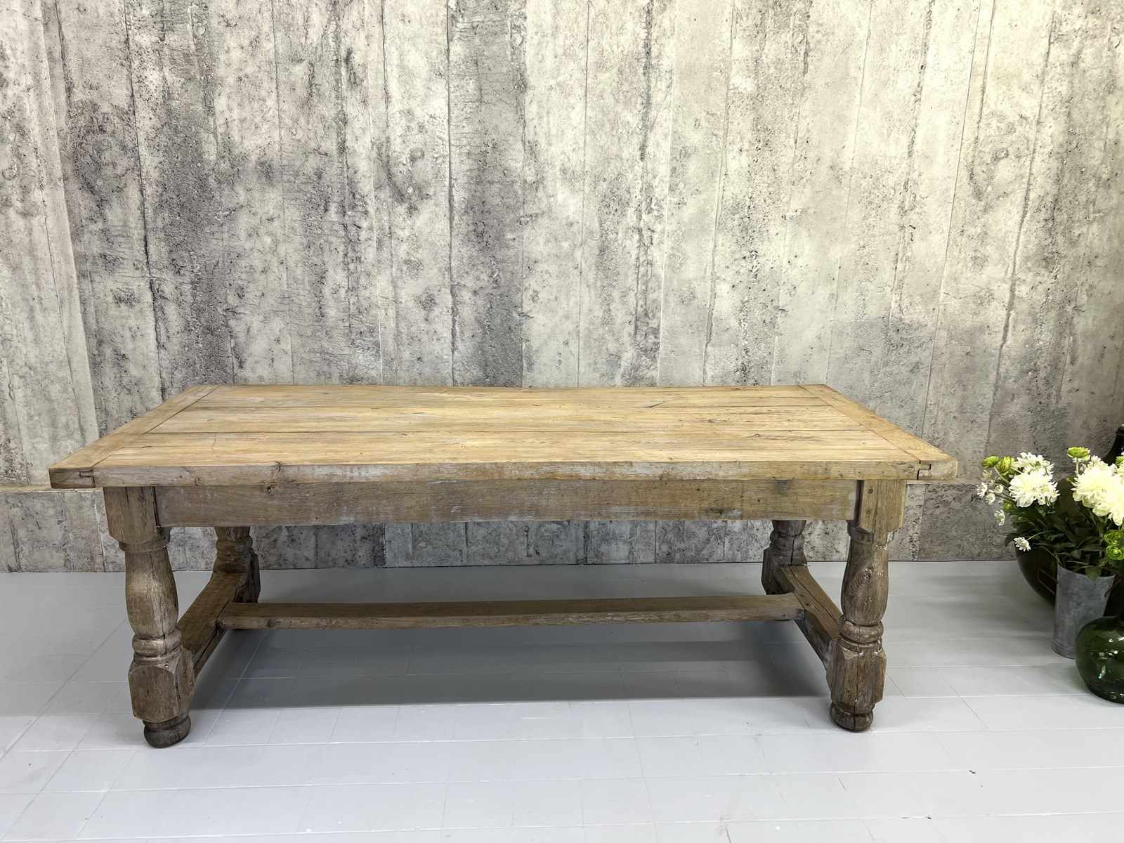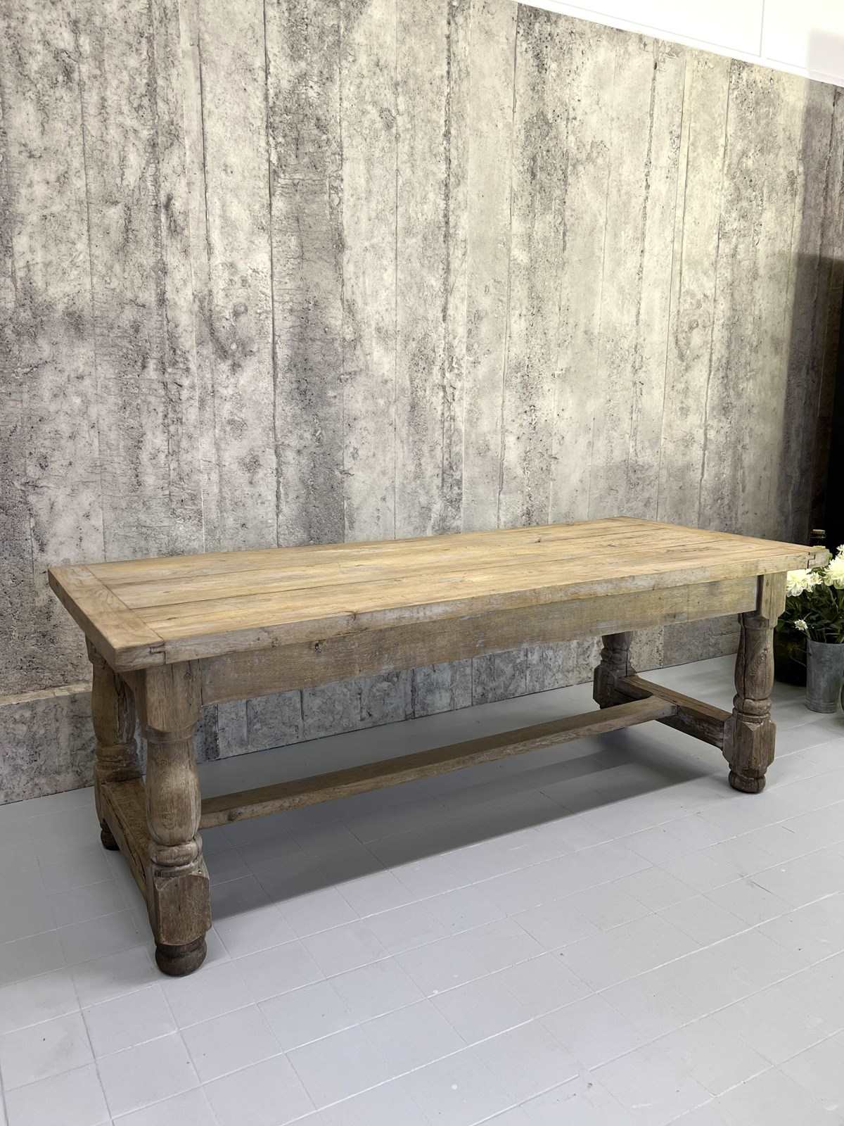 199Cm Faded Grey Solid Oak Farmhouse Refectory Dining Table