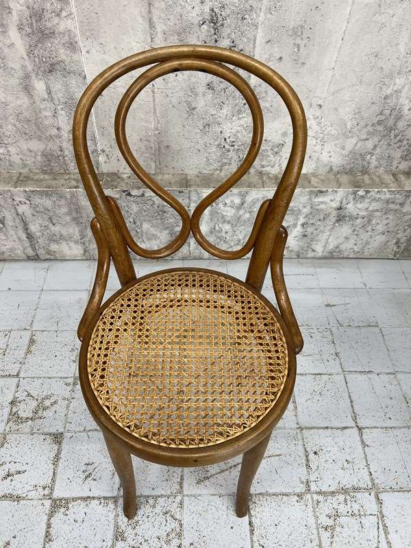 A really fabulous individual bentwood carver with a cane seat pad, which would have been seen in French bistros the length and breath of France in the late 1900's. This chair would be ideal on its own, dressing a corner or a room, or at a desk, or married with either black or traditional wooden bistro chairs at a dining room table. The chair is old, structurally sound and ready to use as it is.