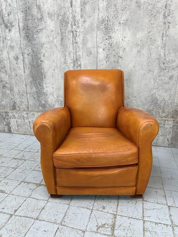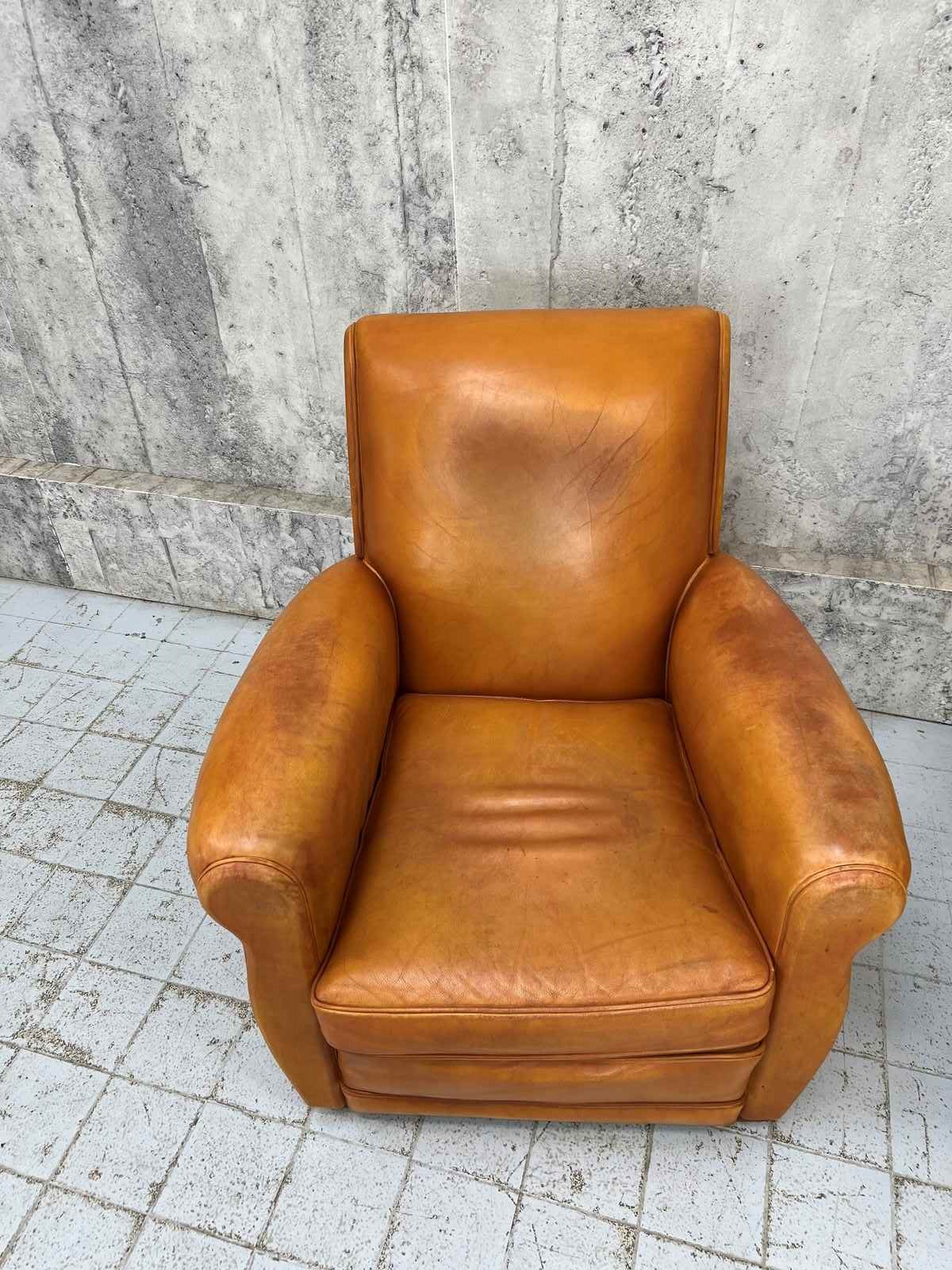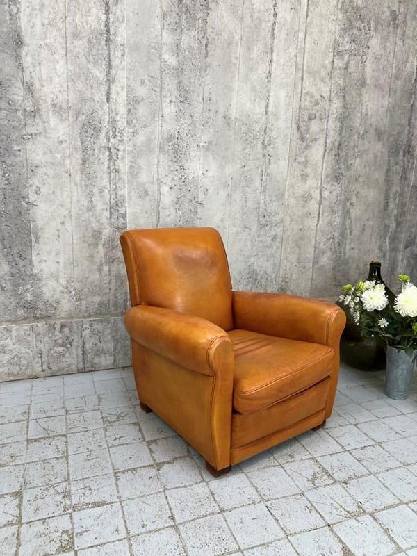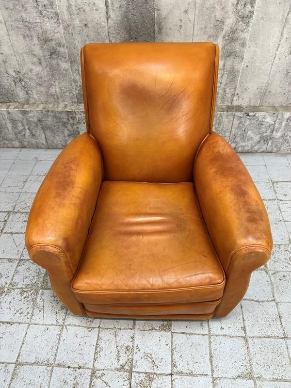 This is a wonderfully loved leather club chair. It is structurally sound. The leather has worn in keeping with high usage but remains in good condition without any splits. Lots of signs of wear to the leather, please see the photographs for details. A wonderful find. Ready to use as it is.