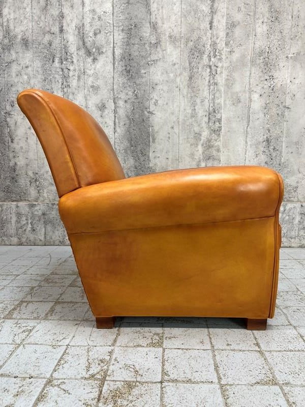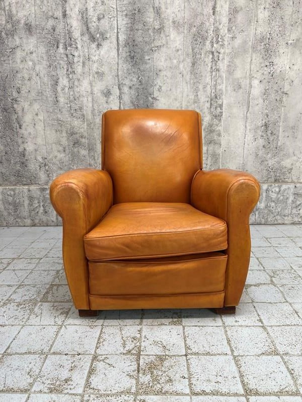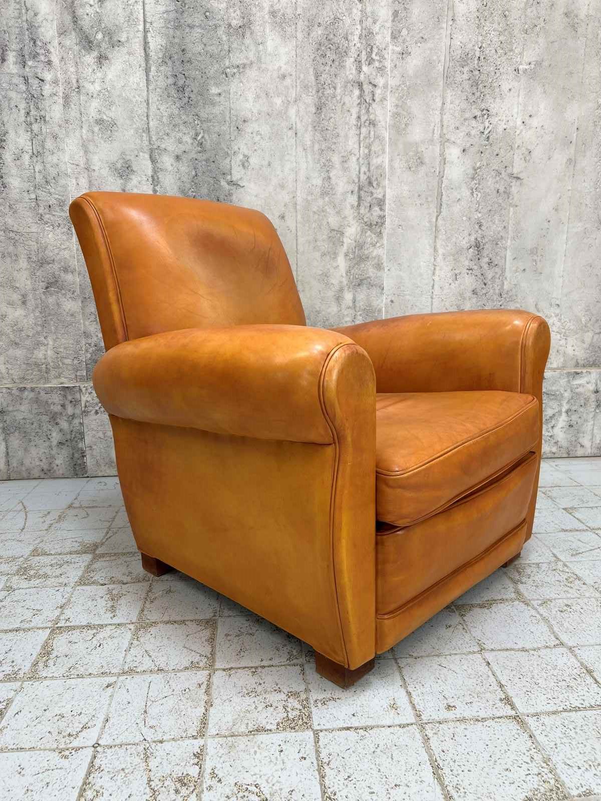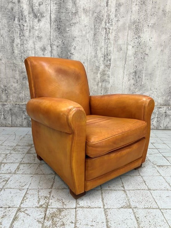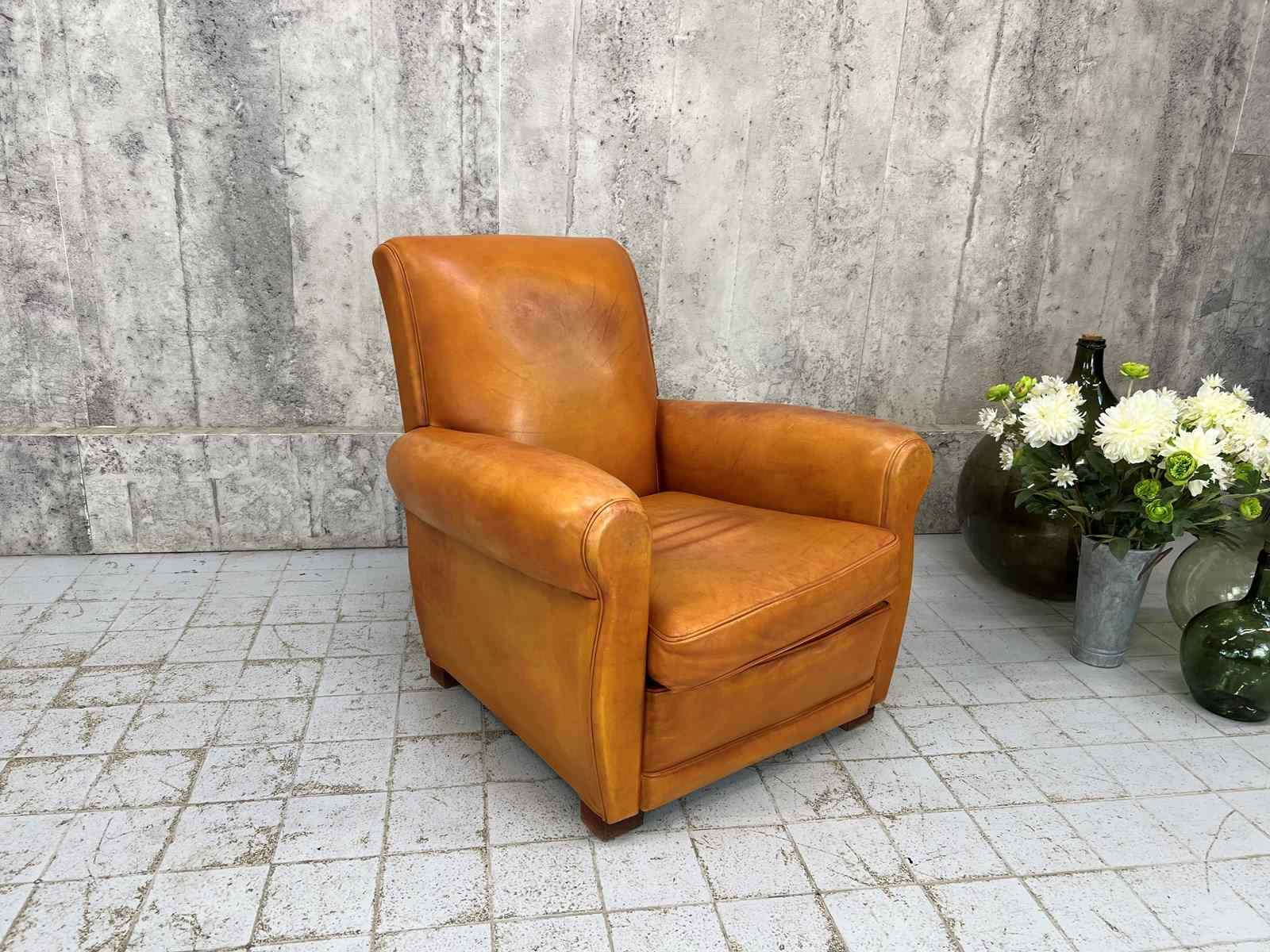 This is a wonderfully loved leather club chair. It is structurally sound. The leather has worn in keeping with high usage but remains in good condition without any splits. Lots of signs of wear to the leather, please see the photographs for details. A wonderful find. Ready to use as it is.