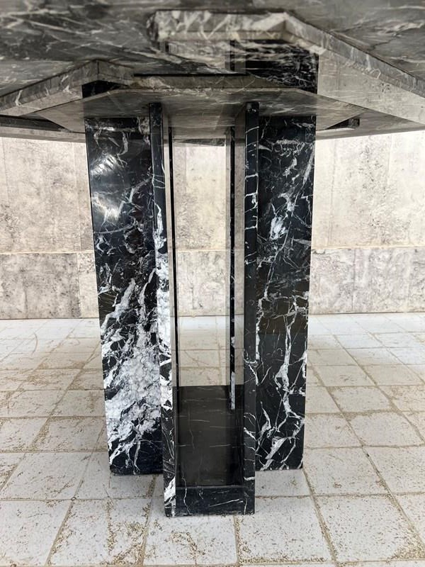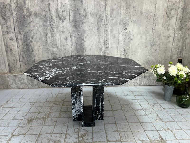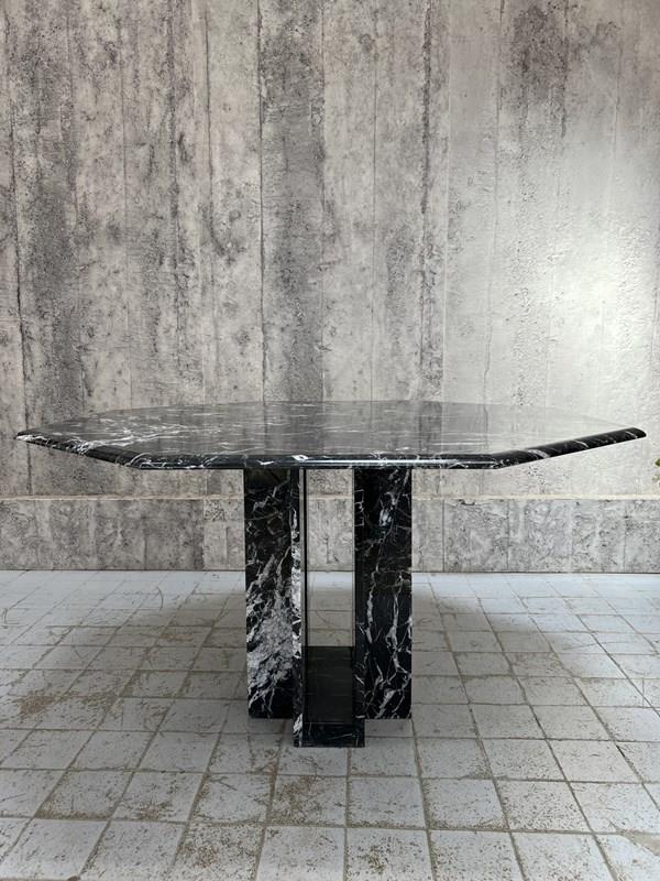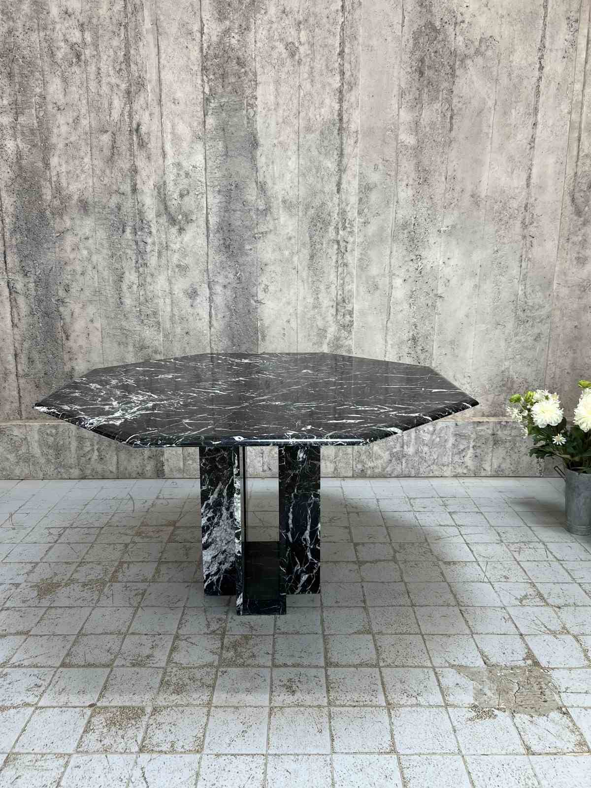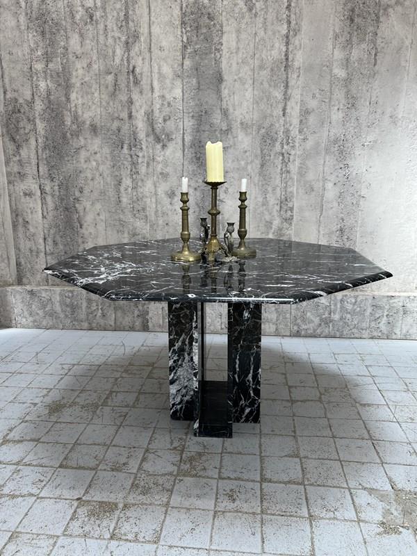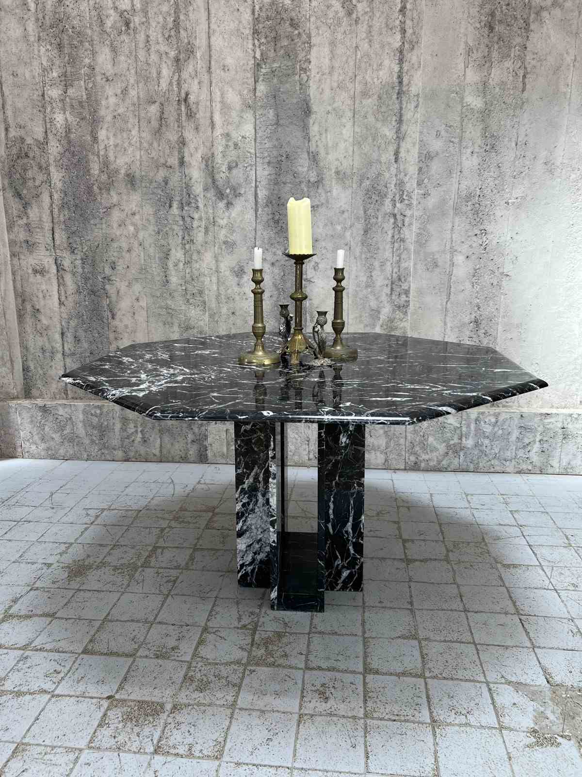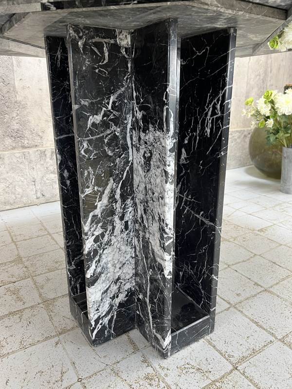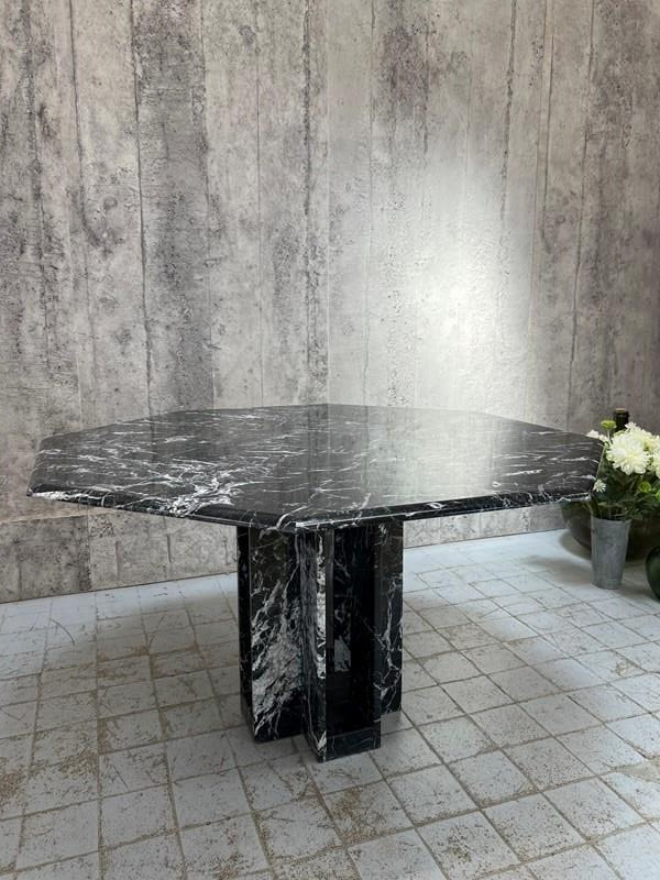Mid Century Italian Hexagonal Black Marble Central Or Dining Table