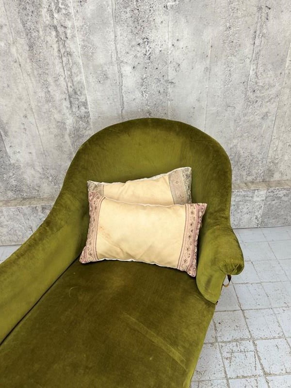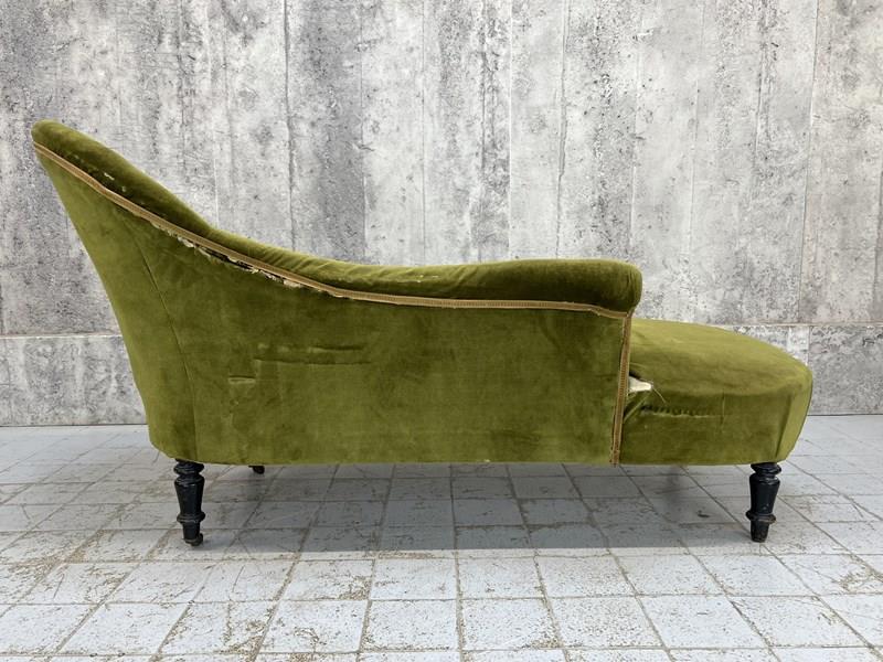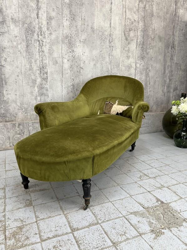 Napoleon III Moss Green Velvet Chaise Longue