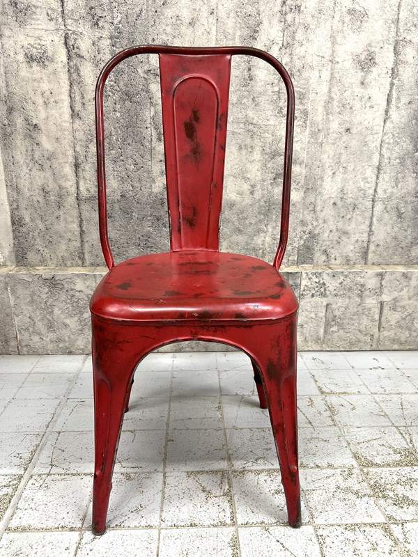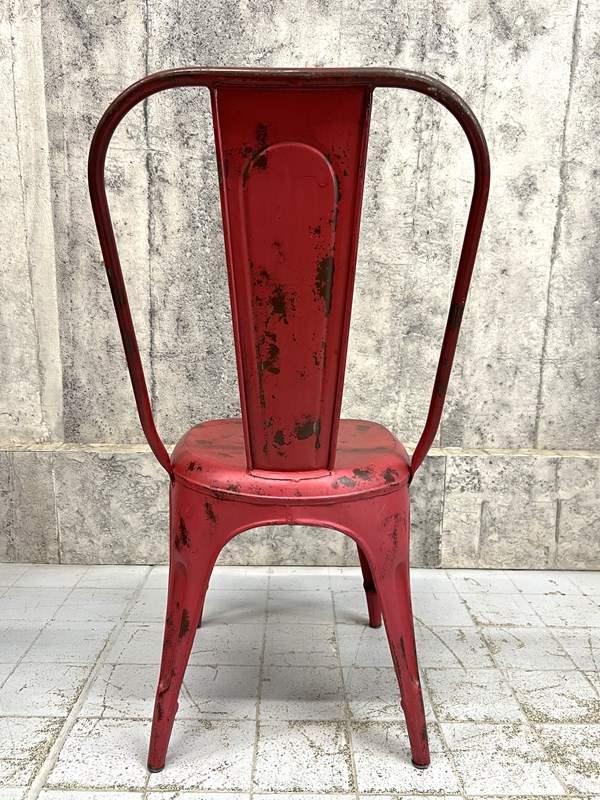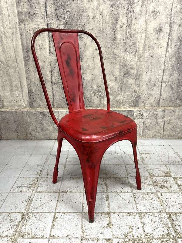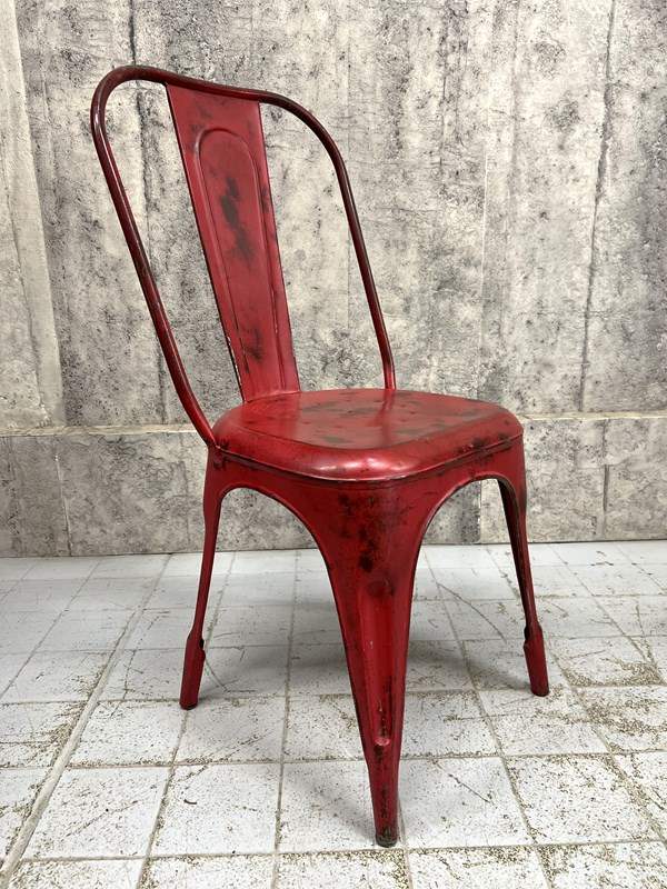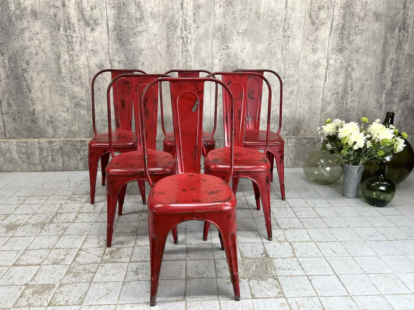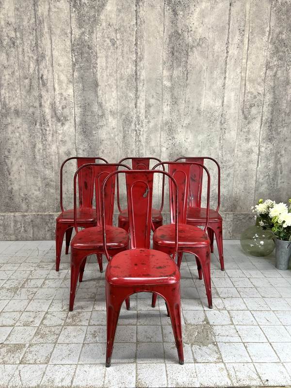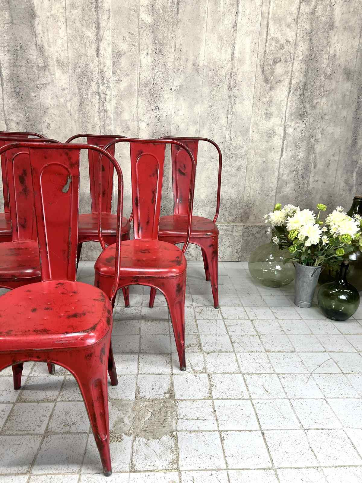 Set Of 6 Red 1930'S Style Tolix Metal Chairs