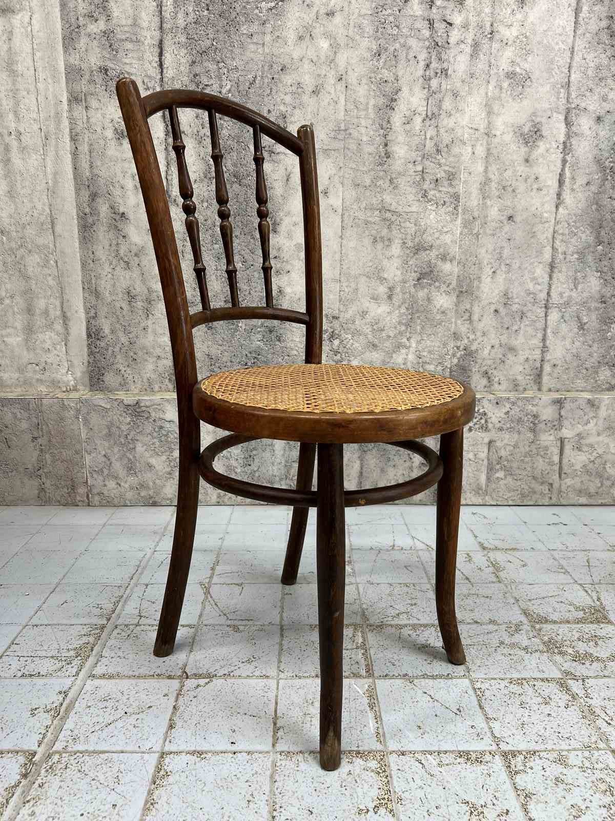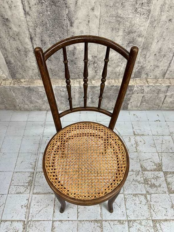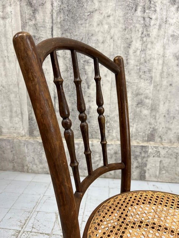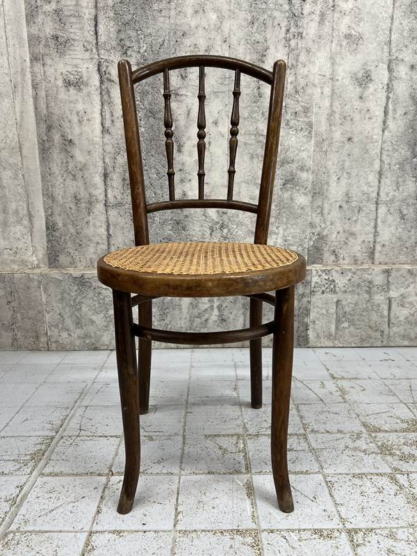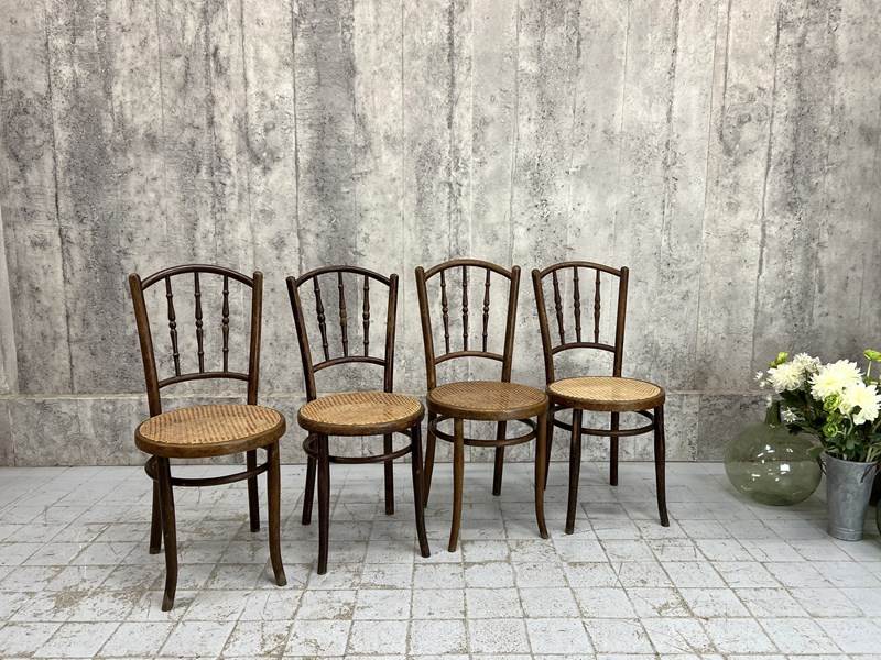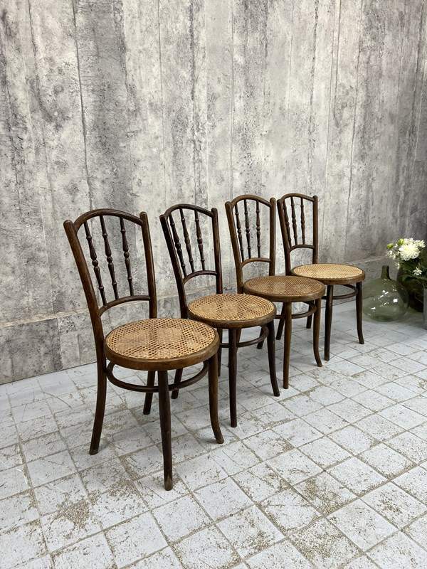 A branded set of four J.J.Kohn bentwood bistro chairs with can seat pads. In good condition, and with three of the four cane seats having been replaced in the recent past. A fabulous set ready to use as they are.