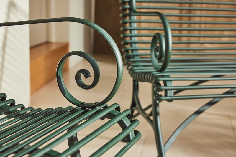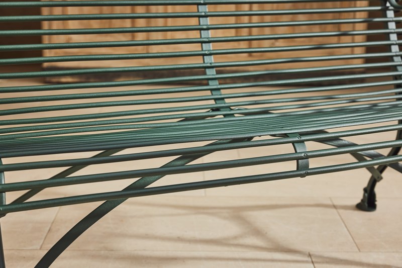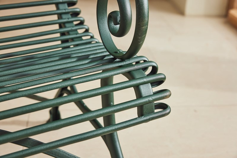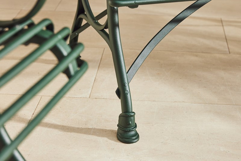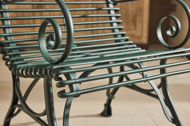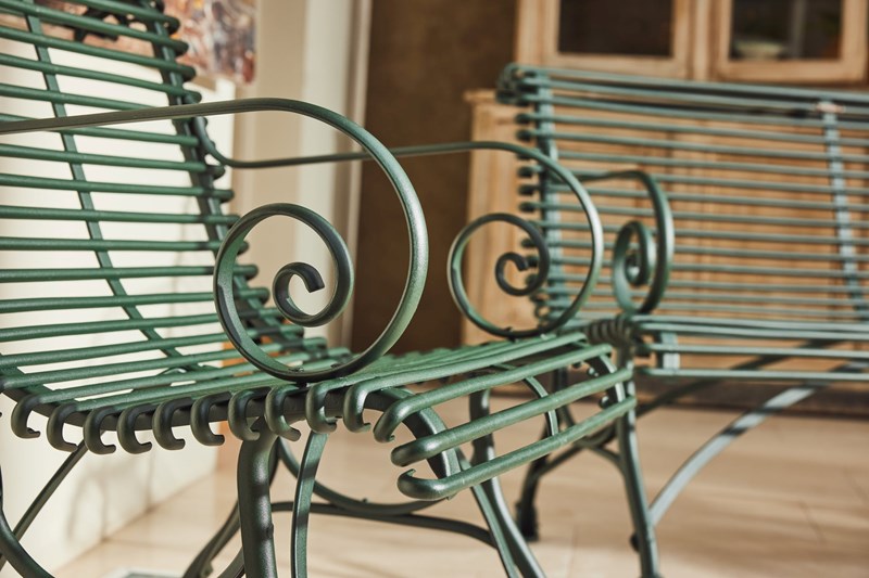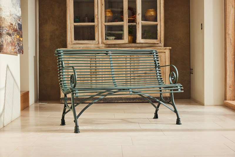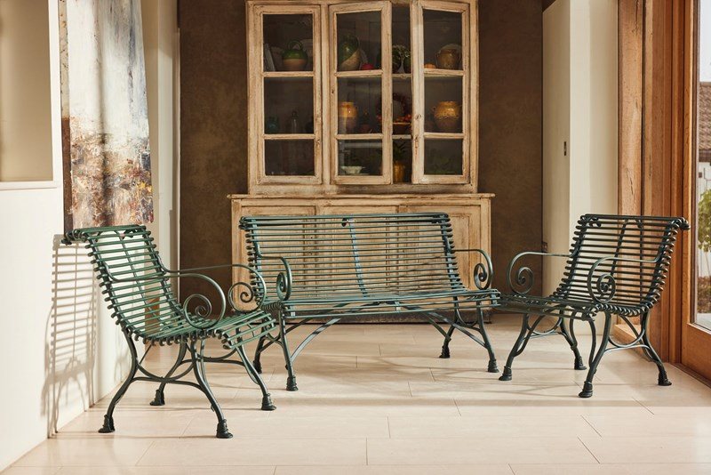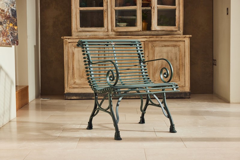 A lovely original Arras Garden Set consisting of a two seater bench and two armchairs. Manufactured in Northern France in and around 1910 it features the cast iron hoof feet associated with the foundries later designs. In very good original condition having been fully restored and powder coated this substantial set would look great in either a modern or traditional garden, on the patio or in the garden room.