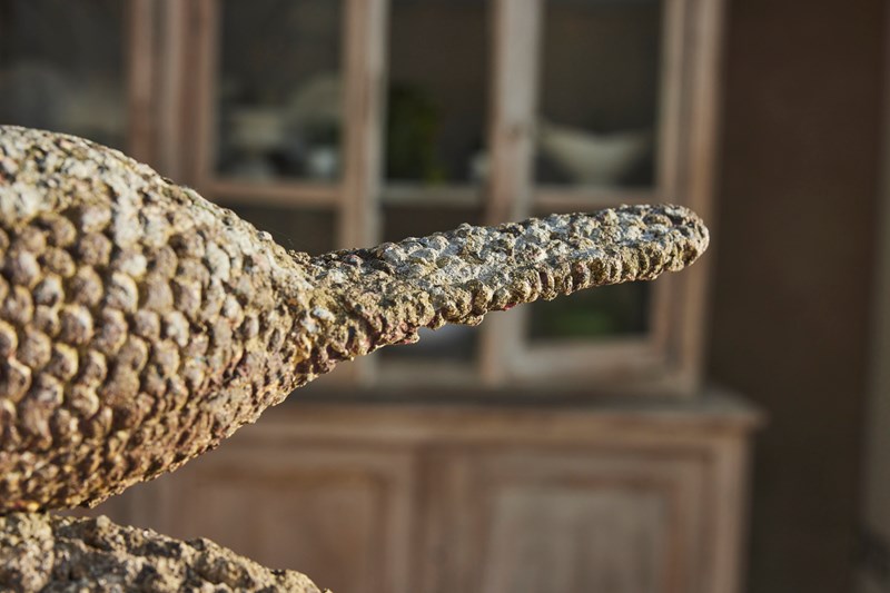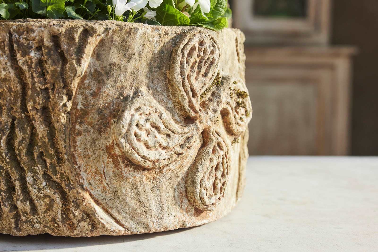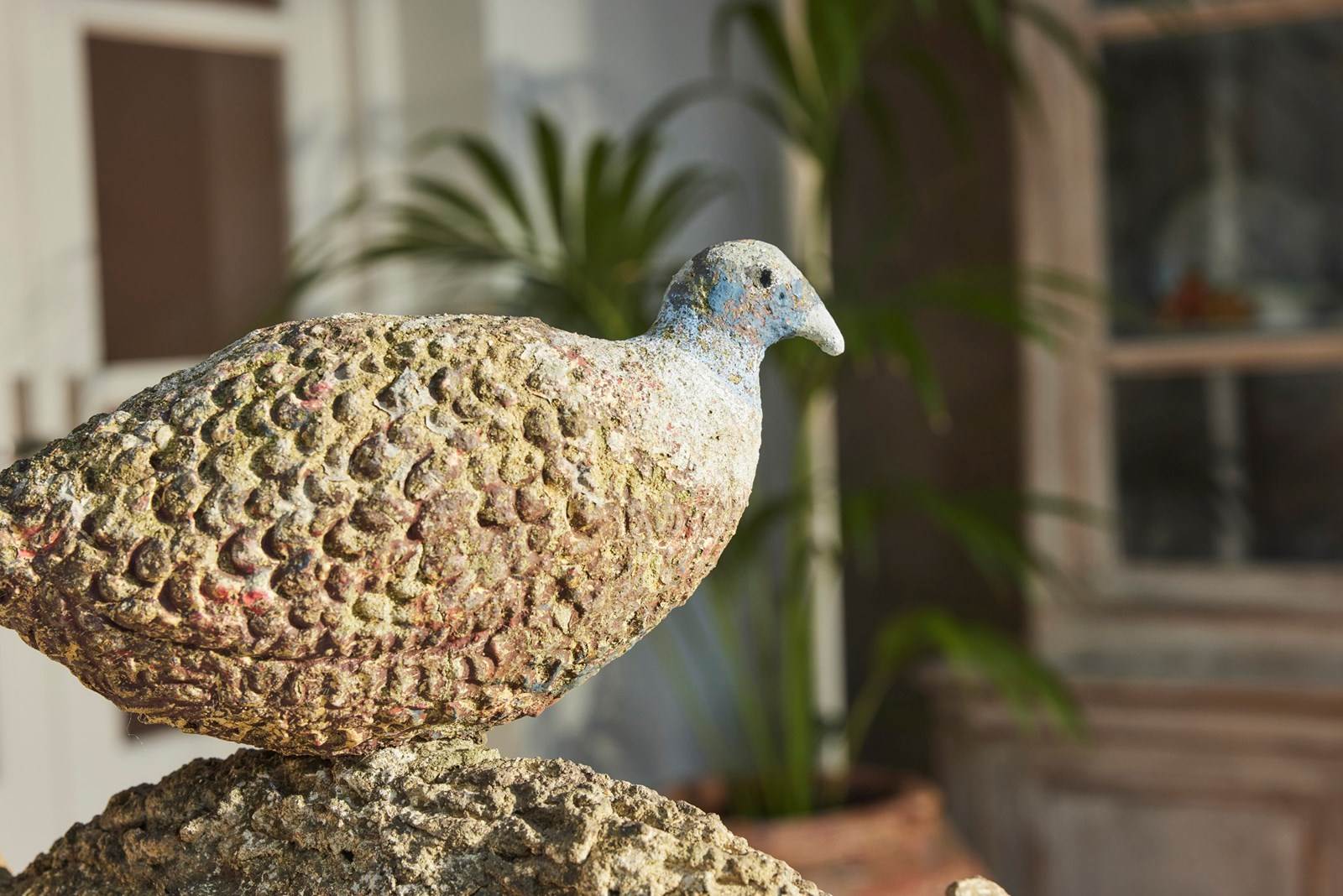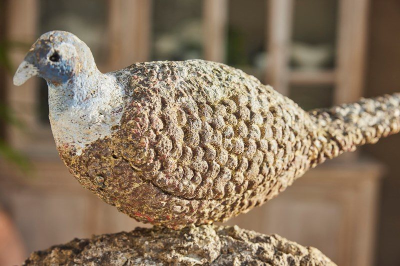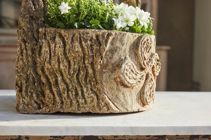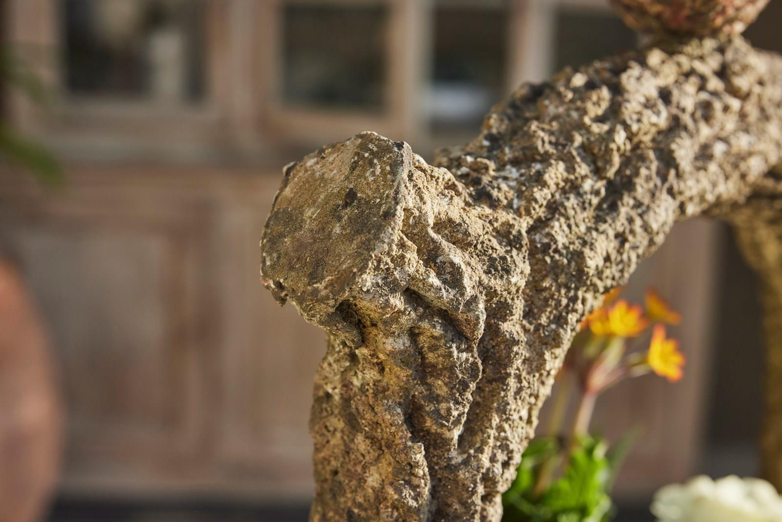 This one-of-a-kind artisan-made faux bois (fake wood) planter is a true statement piece of garden art. Featuring a realistic pheasant perched on the handle, it’s both charming and eye-catching. With a generous planting depth, it allows for stunning seasonal displays, as seen in the photos. Every detail is meticulously crafted, from the motif carved on the front to the realistic wood rings on the handle and rear. A truly special and unique piece.