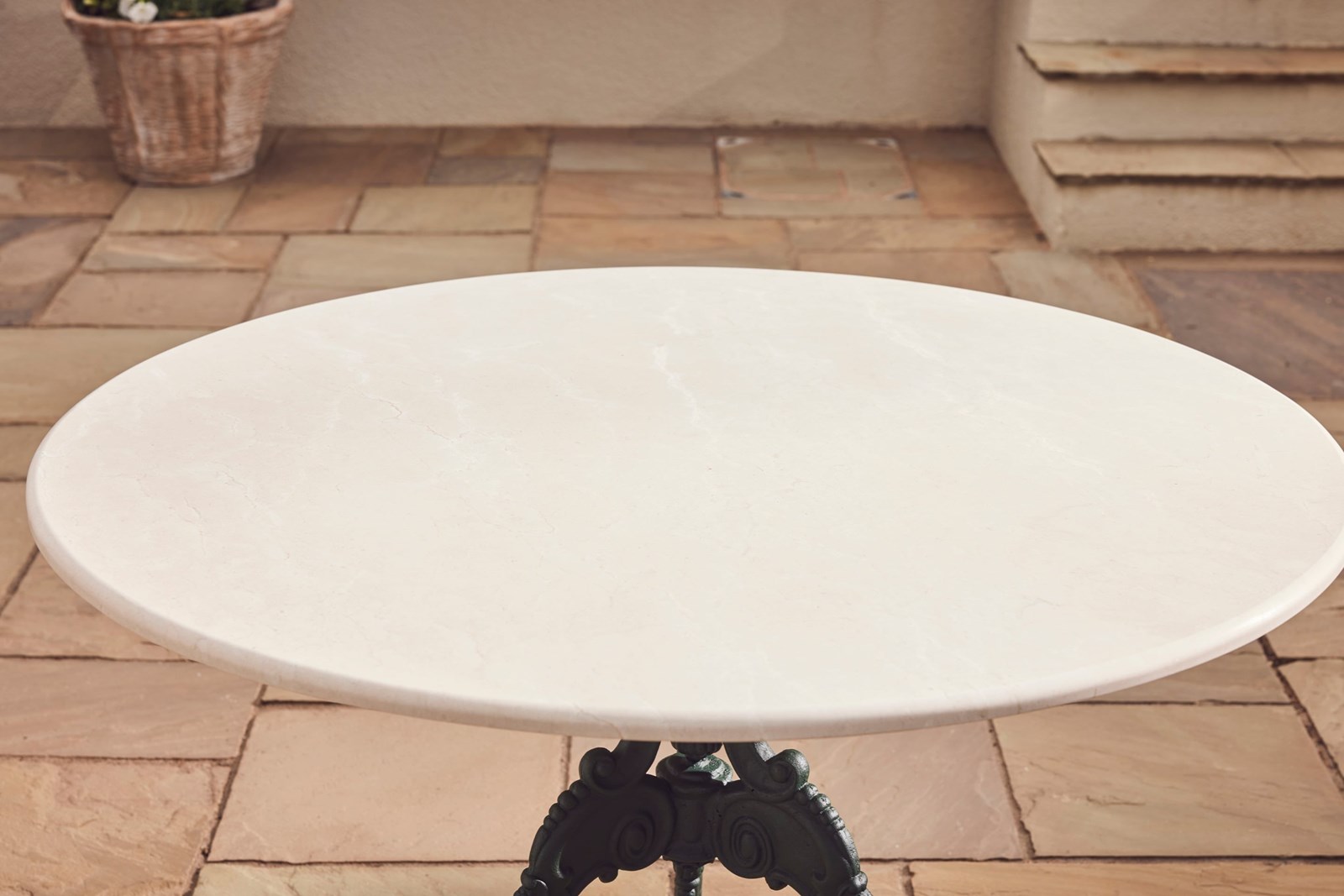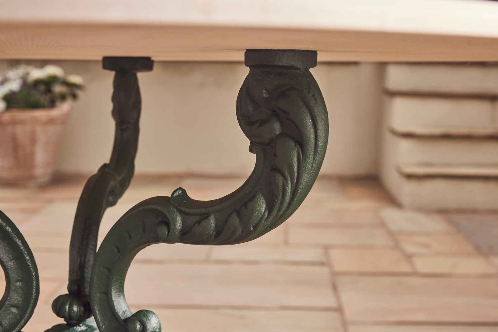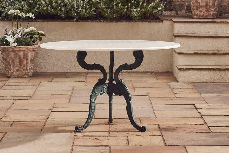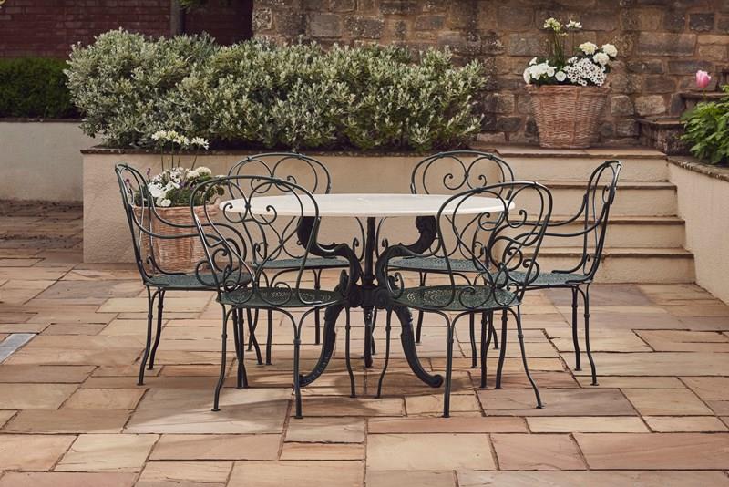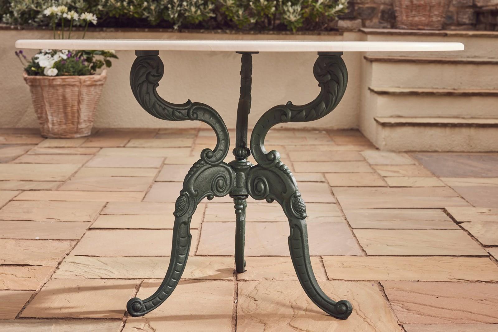 Add real character to your outdoor space with this beautiful Italian garden set. The very well cast iron table with wonderful decorative includes a new marble top.