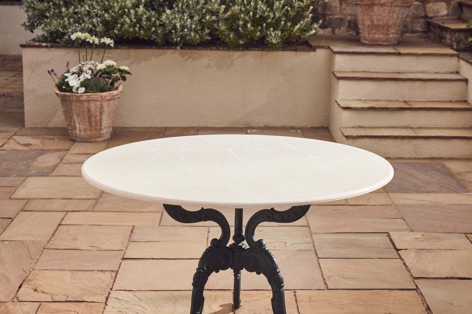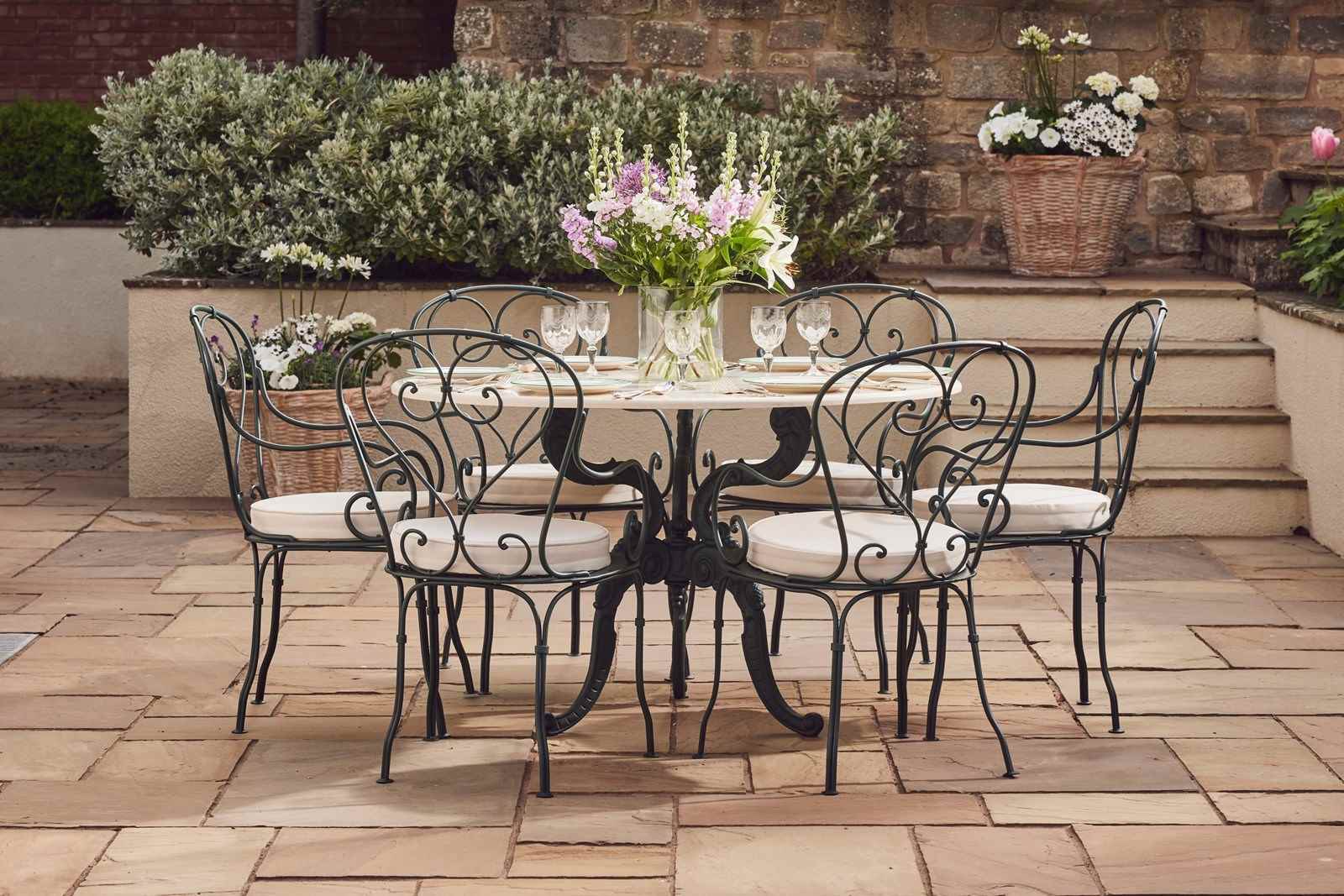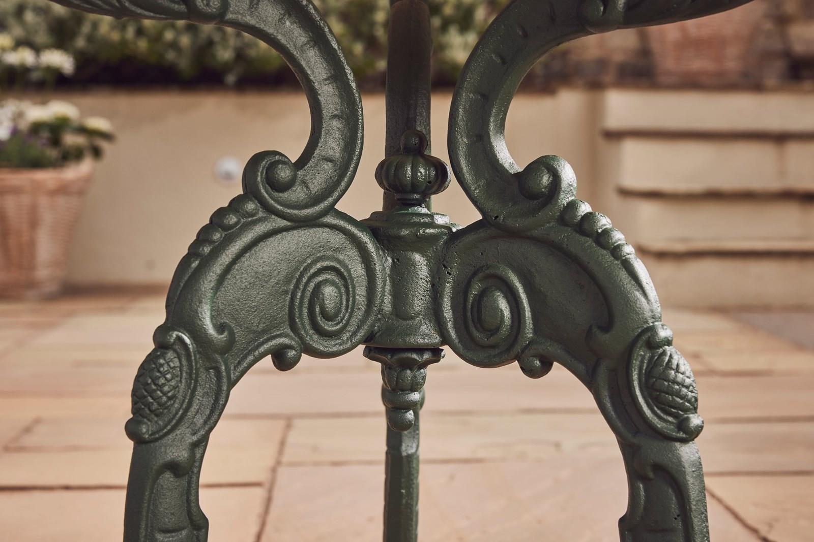Add real character to your outdoor space with this beautiful Italian garden set. The very well cast iron table with wonderful decorative includes a new marble top.