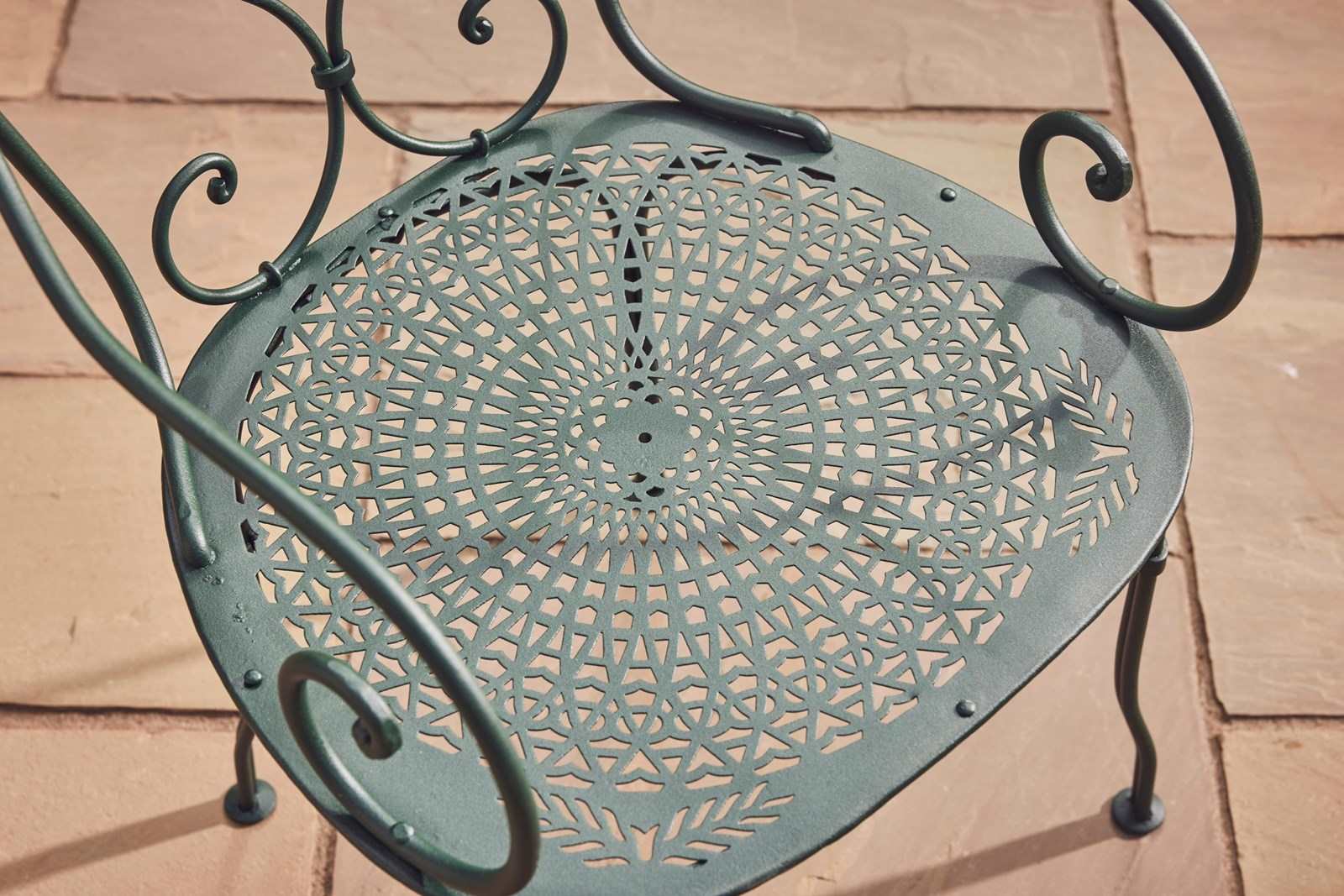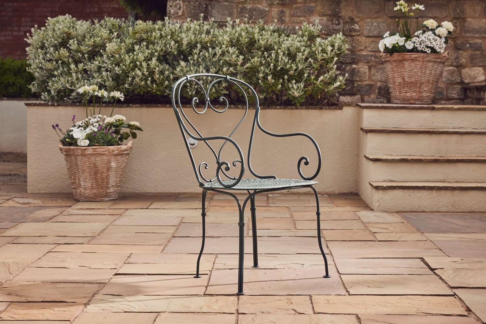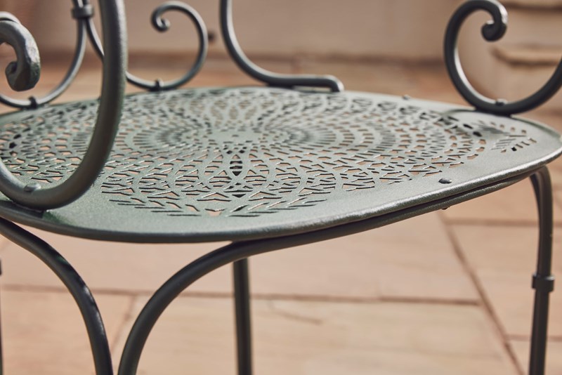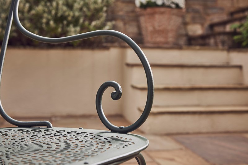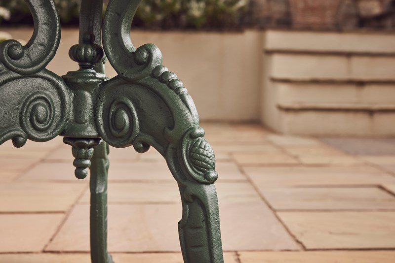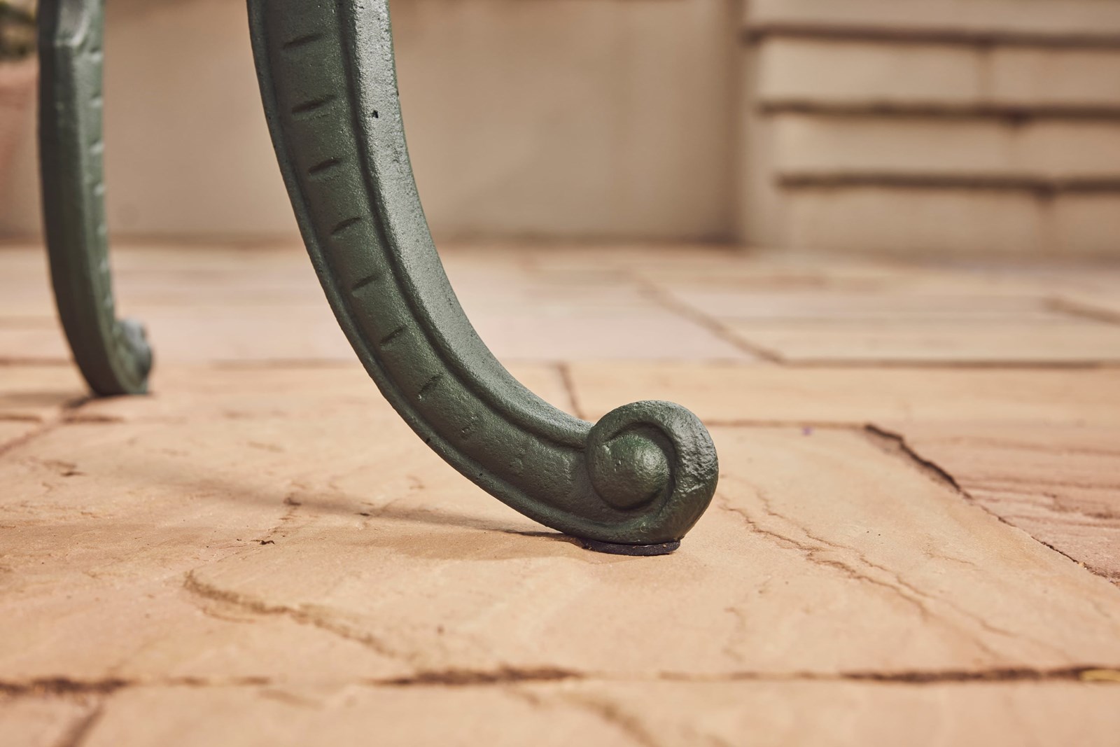 Add real character to your outdoor space with this beautiful Italian garden set. The very well cast iron table with wonderful decorative includes a new marble top.