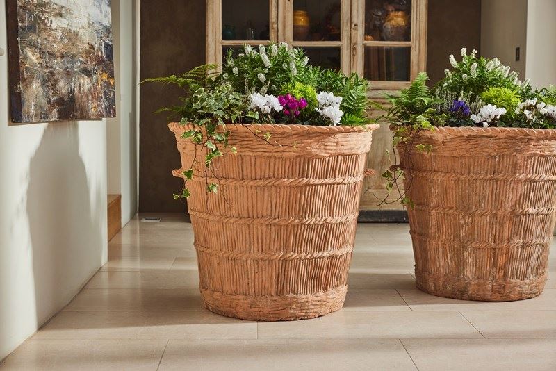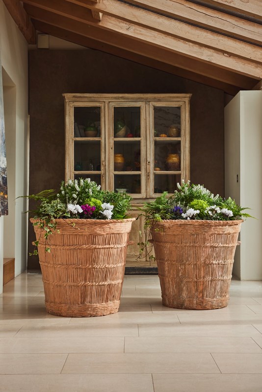 They are ideally suited for mature olive, bay, or other specimen trees, where the planters contribute as much to the composition as the planting itself.