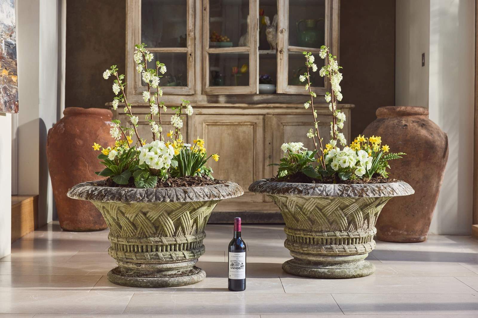 Their generous width makes them particularly good for seasonal planting, whether filled with spring bulbs, summer bedding or autumn arrangements. Broad enough to make a real show when planted well. Good, honest examples from the period.
