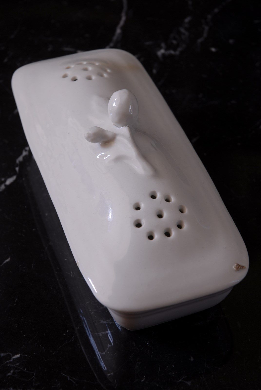 Description: An antique porcelain toothbrush or razor dish dating from the late 1800’s. All complete, a beautiful, elegant and timeless bathroom accessory.
