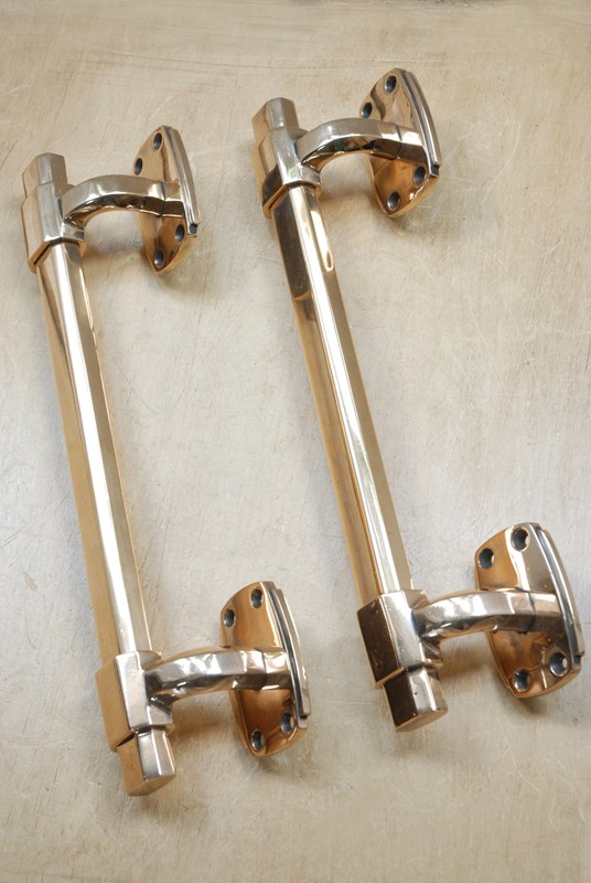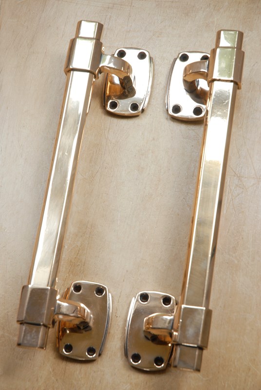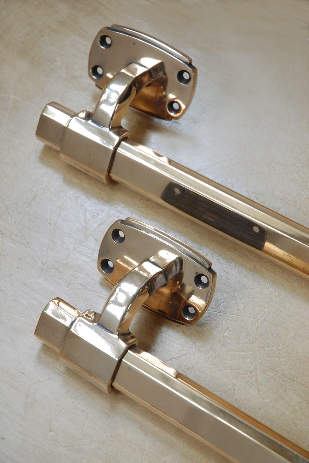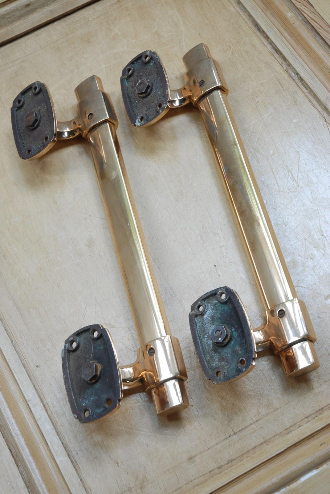 Condition: Excellent. These handles have been hand polished to a high warm brass shine, they are unlacquered therefore a polish with brass cleaner occasionally will maintain this level of shine.