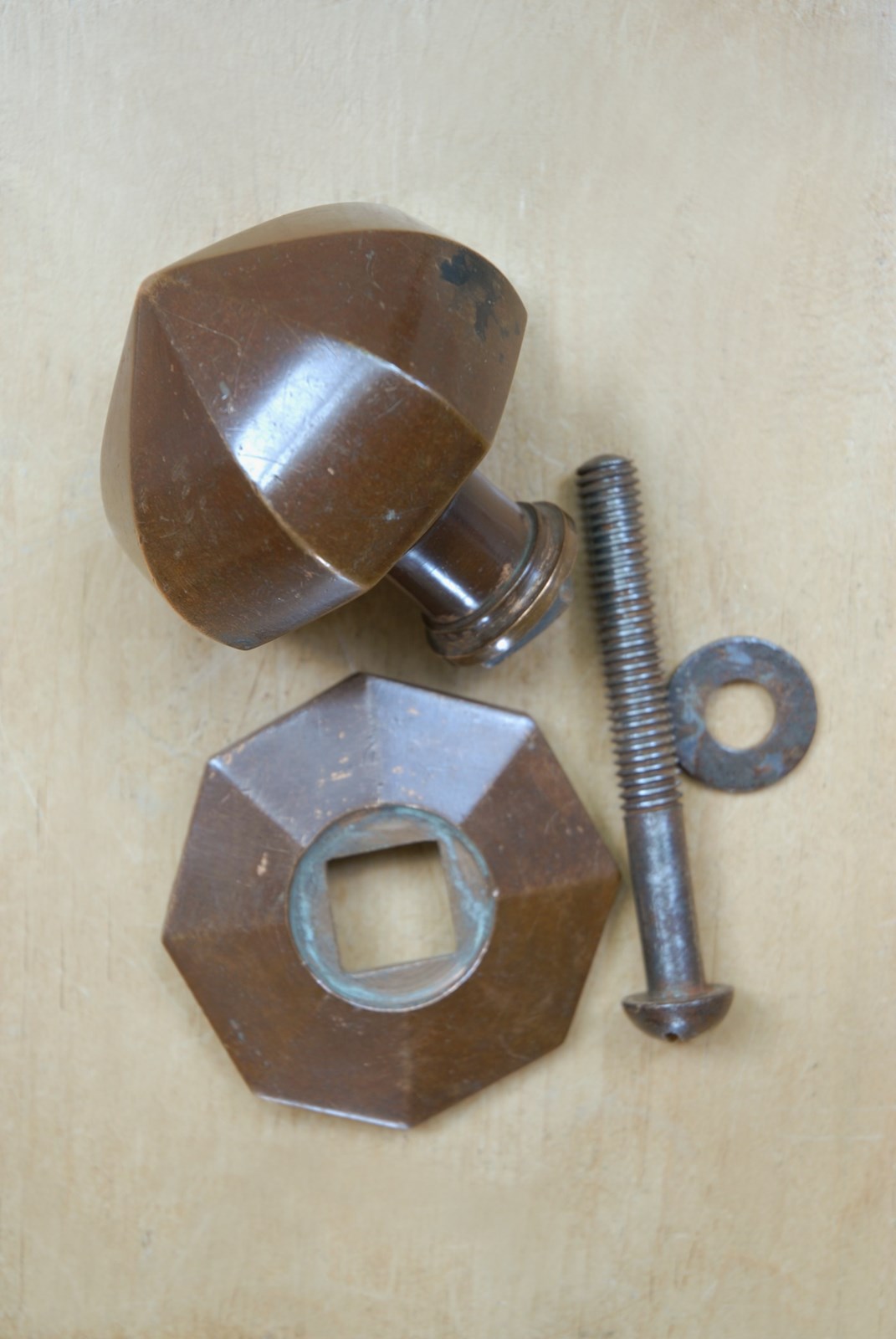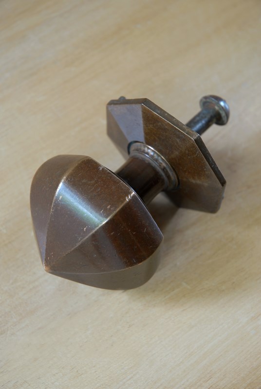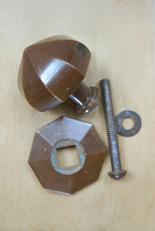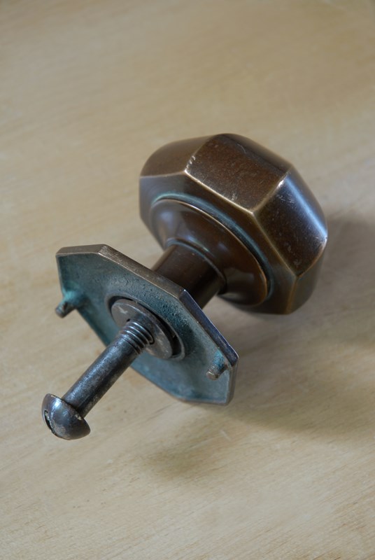 Original, classic and timeless front door pull. This antique door knob has an octagonal handle and backplate. In solid cast brass with a good weight. Lovely patina to the surface. Perfect for a Victorian front door.