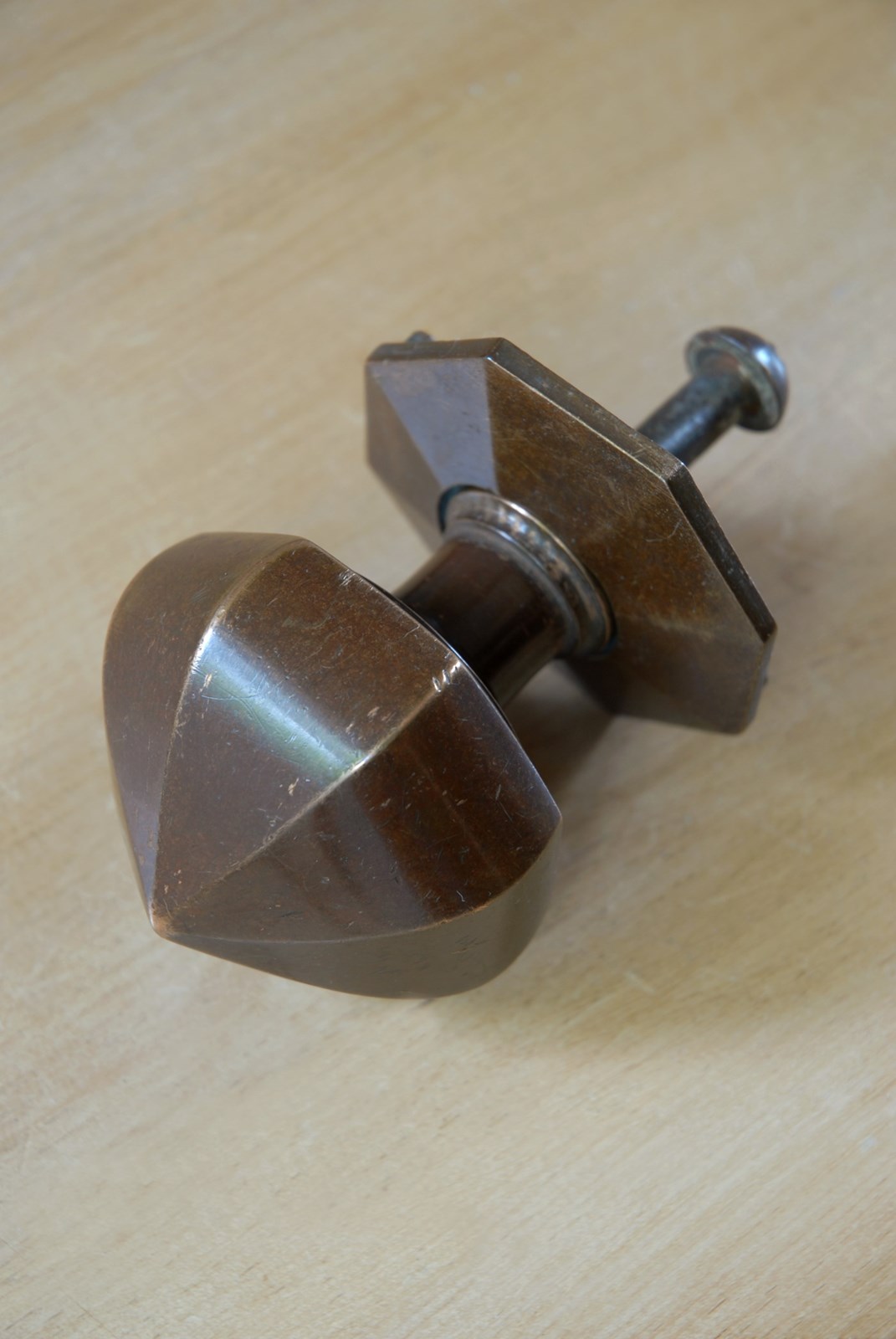 Condition: Excellent. Lightly cleaned by hand to retain the antique patina. All original parts including threaded bolt and washer, ready to install.