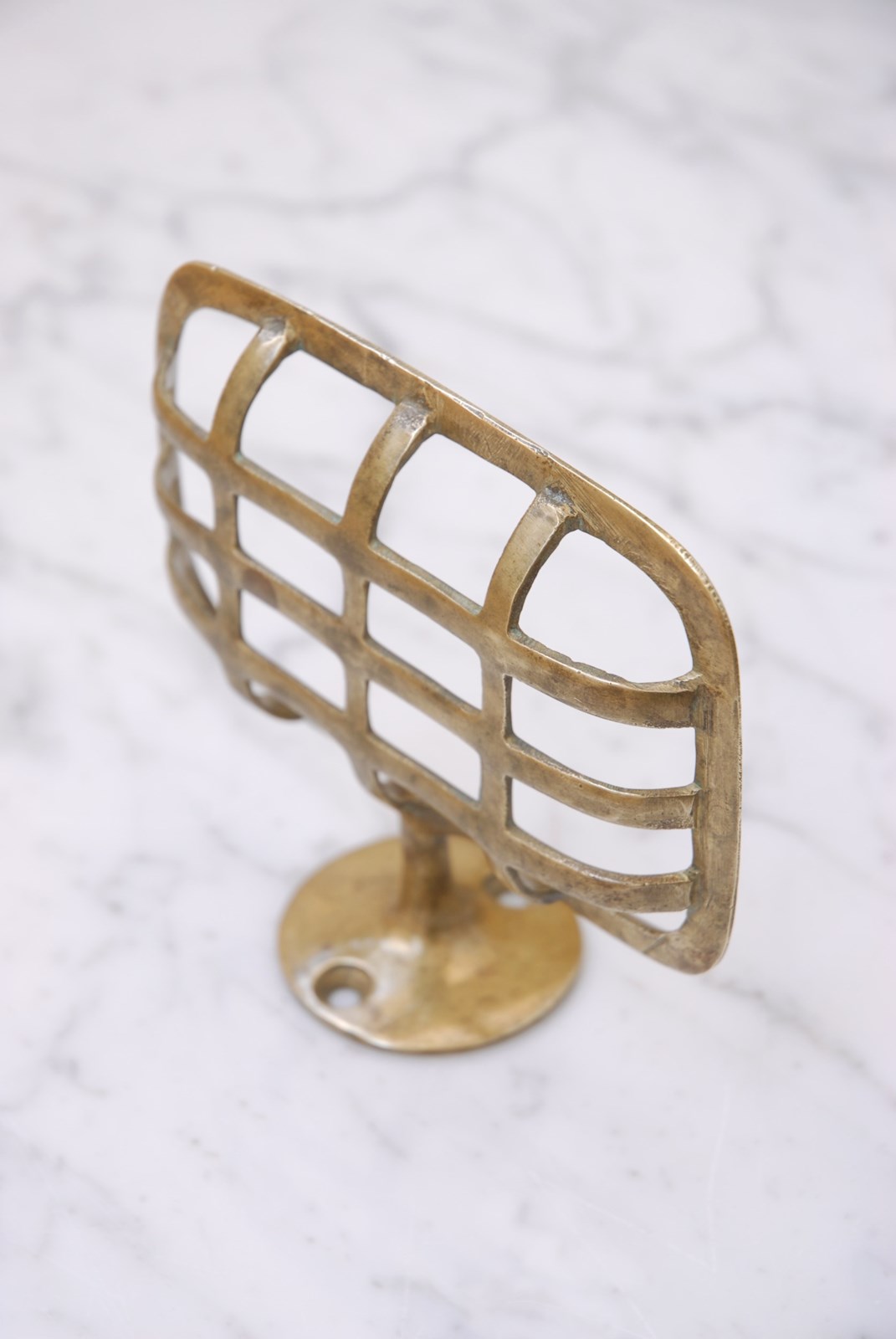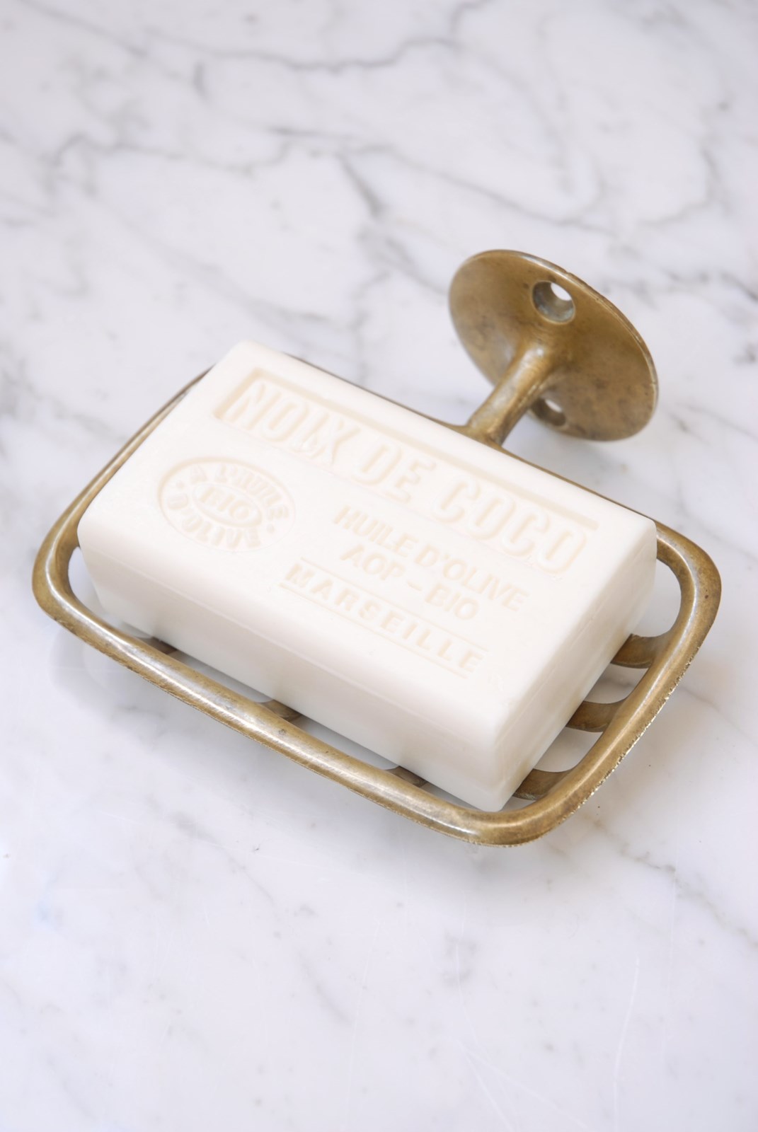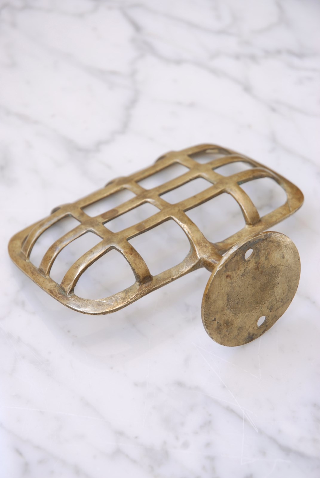 Description: The perfect finishing touch to a bathroom. This beautiful antique brass soap holder is designed for wall mounting. A real hand made quality to this piece, with subtle chisel marks to the back from the person that crafted it, sourced in France.