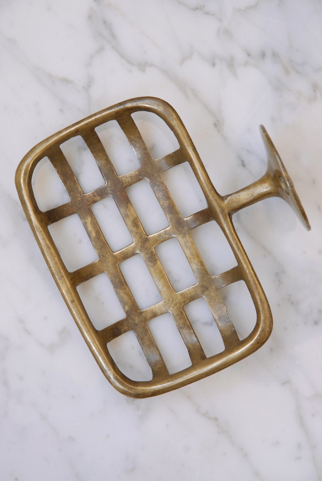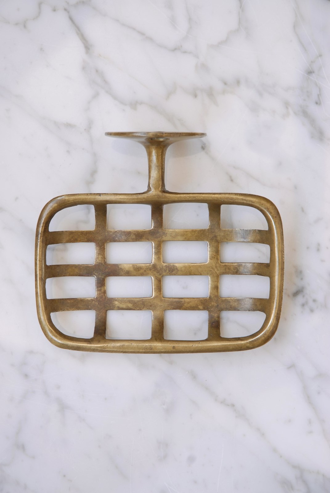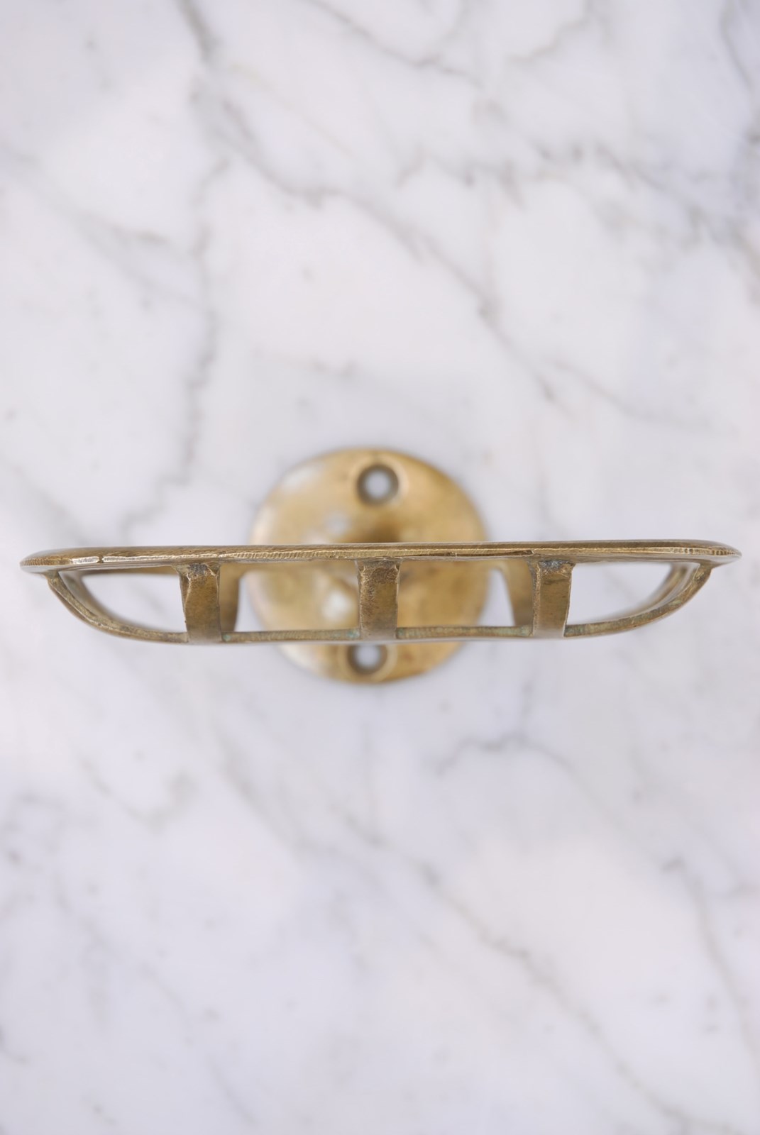 Description: The perfect finishing touch to a bathroom. This beautiful antique brass soap holder is designed for wall mounting. A real hand made quality to this piece, with subtle chisel marks to the back from the person that crafted it, sourced in France.