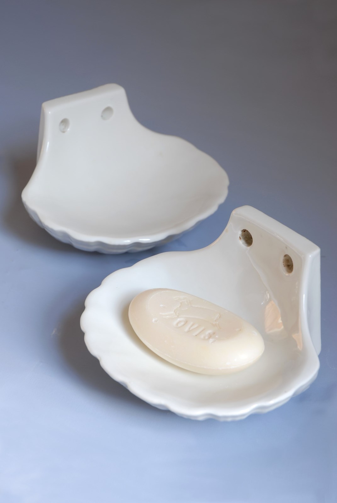 Description: Original large French ceramic scalloped shaped soap holder. The size is designed to easily accommodate a soap or sponge. Designed to be mounted to the wall, perfectly suited to a bathroom or kitchen setting. The price is for one single soap holder, I currently have two of these available to purchase.
