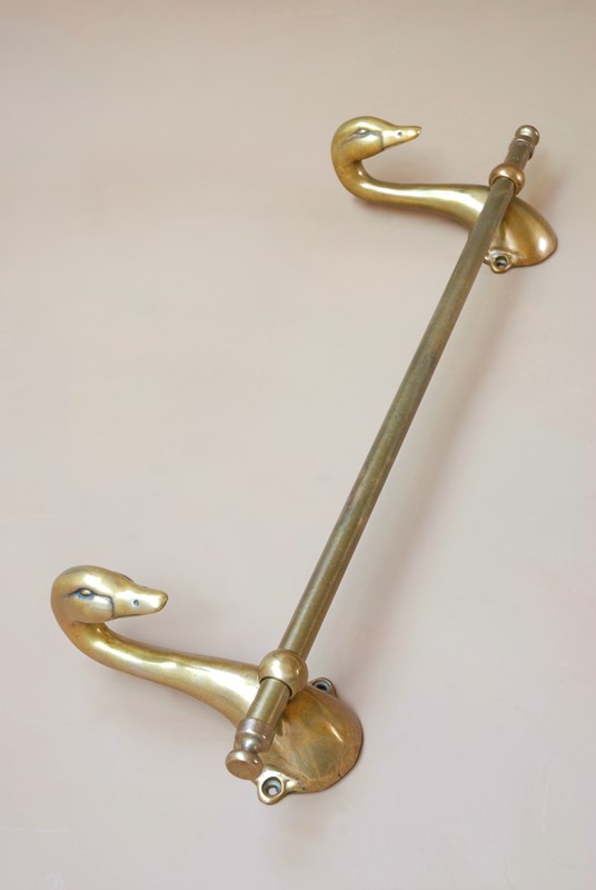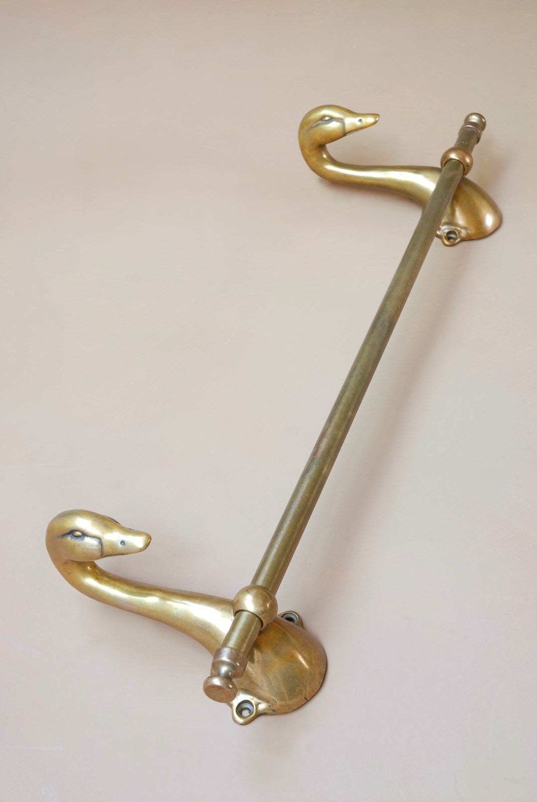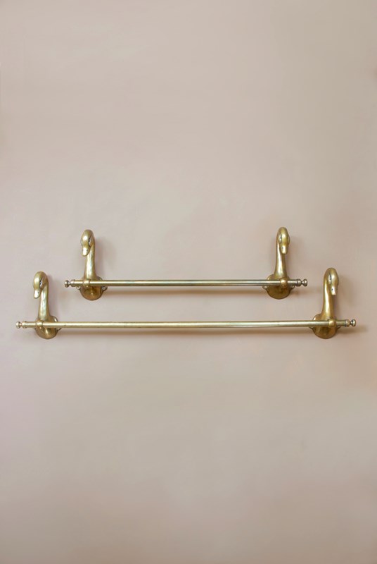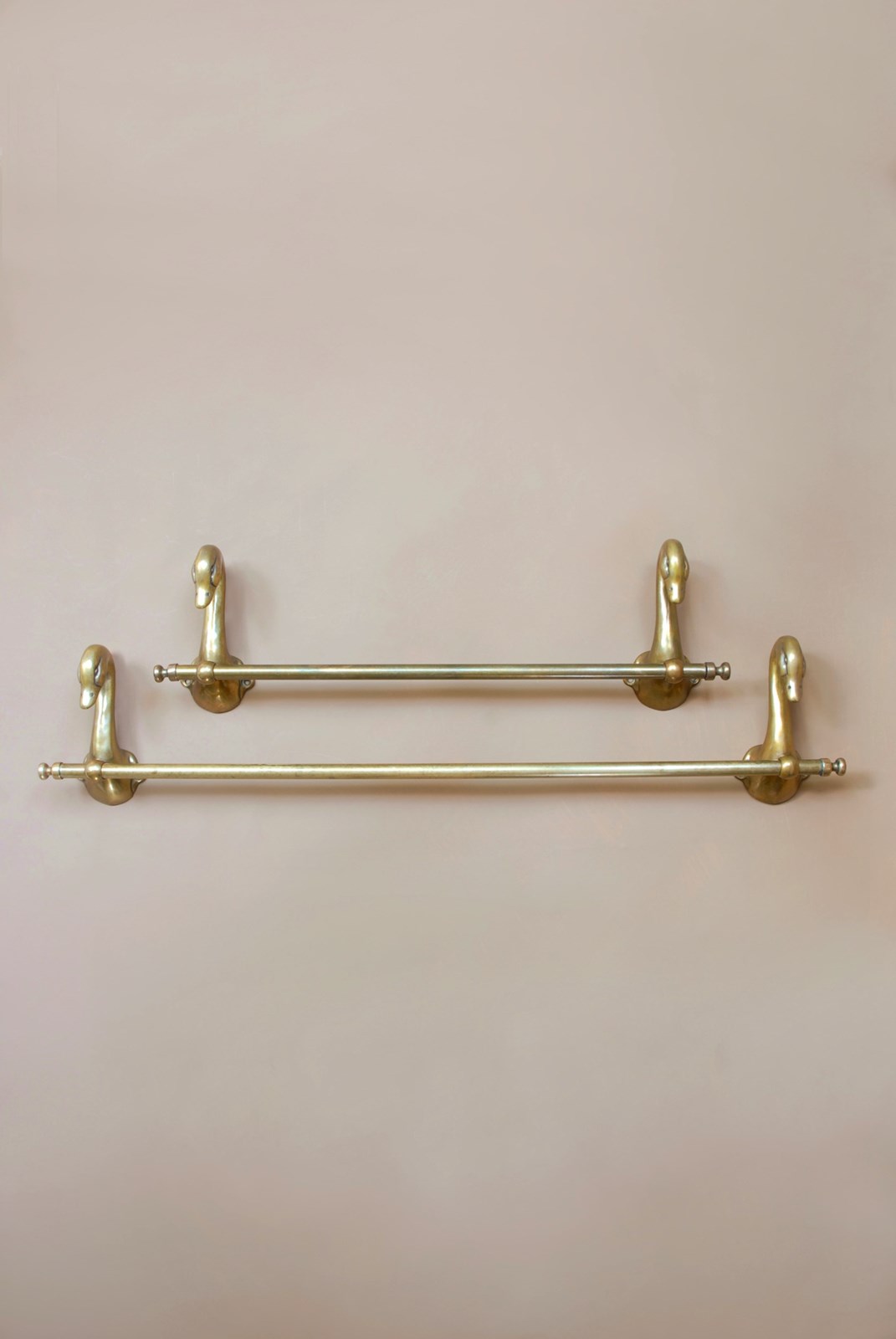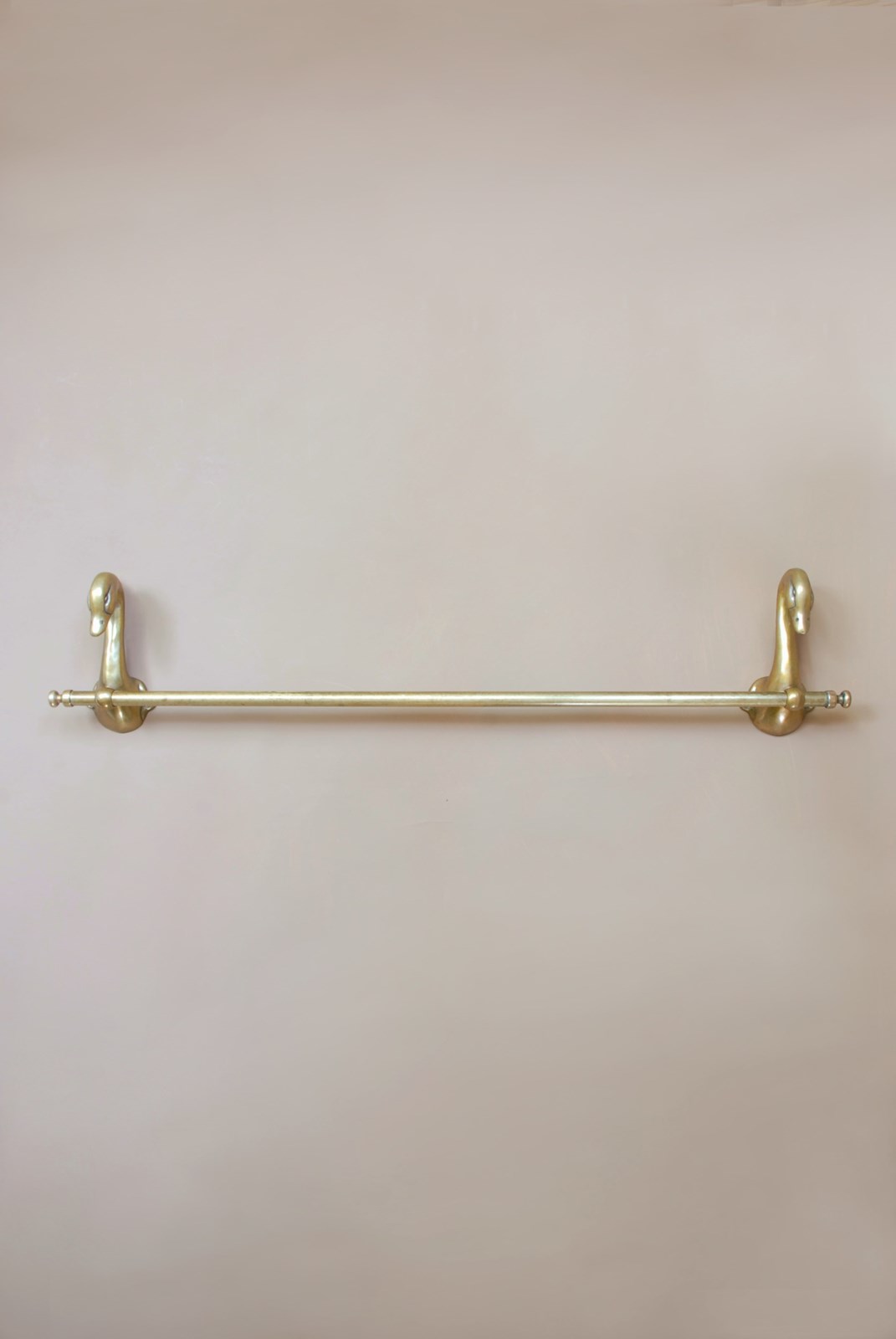 Description: Inspired by the idea to have a decorative and functional bathroom range, Water & Wood have introduced a small collection of bronze bathroom accessories. The swan as a motif was chosen for its silhouette and associations to water. Often found on French antique bath taps, the swans lend themselves to a bathroom setting. This towel rail is designed to be wall mounted and comes in 2 lengths. (See last photograph for the hand towel length). Here the longer length of 26 1/2” is perfect for a bath towel.