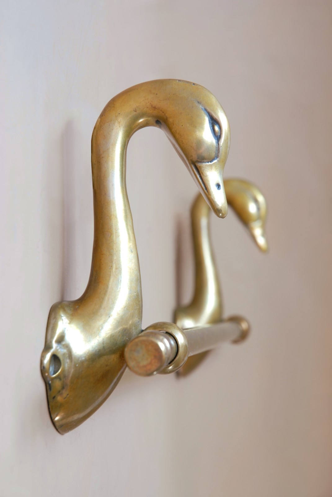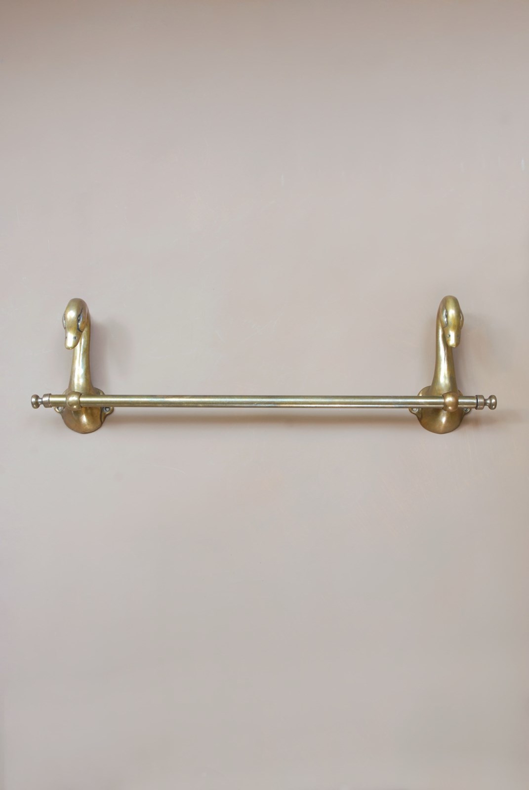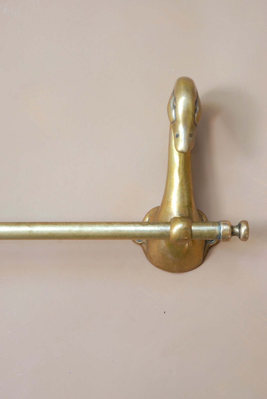 Inspired by the idea to have a decorative and functional bathroom range, Water & Wood have introduced a small collection of bronze bathroom accessories. The swan as a motif was chosen for its silhouette and associations to water. Often found on antique French bath taps, the swans lend themselves to a bathroom setting. This towel rail is wall mounted and comes in two lengths. Here the shorter length of 19" is perfect for a hand towel.