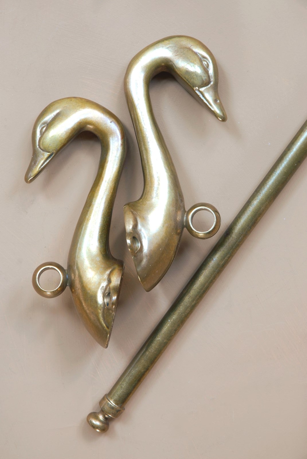 Rail length: 19" - 48cm, Swan mounts: 14cm x 6.7cm, Supplied with 2" long brass screws for installation.