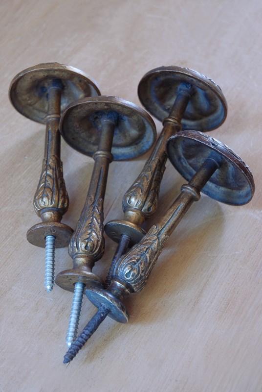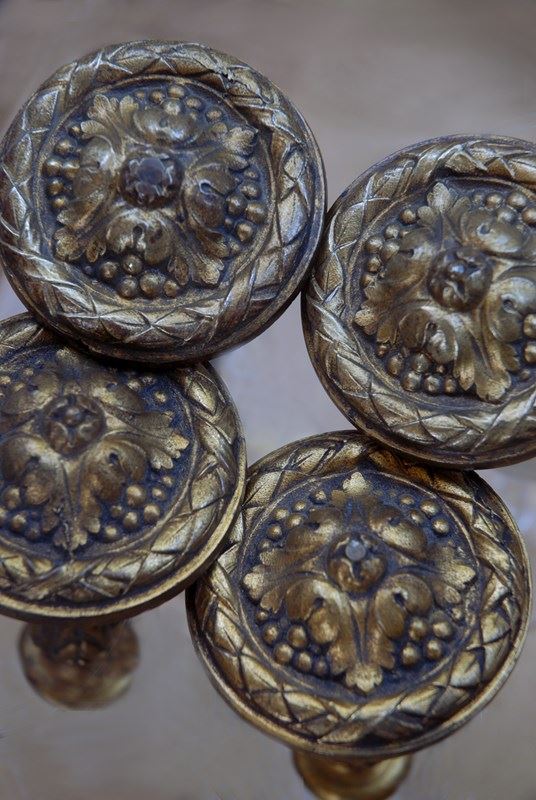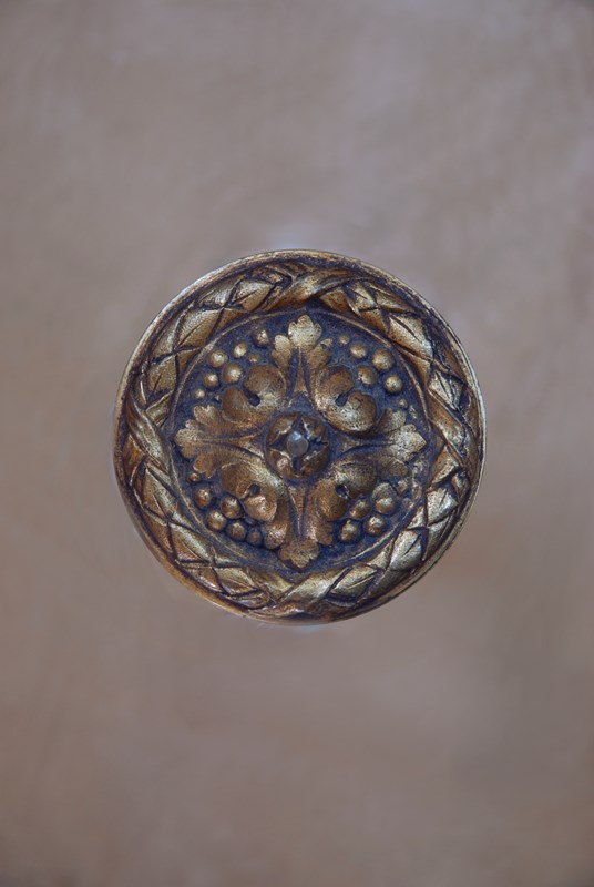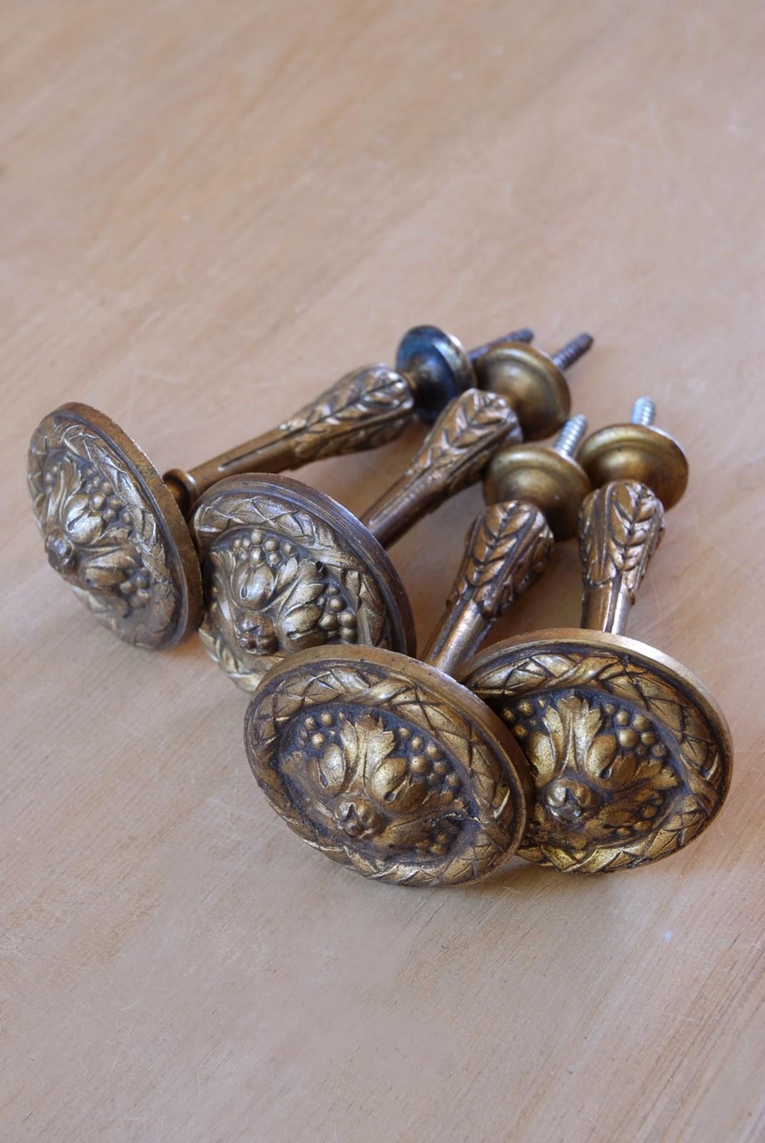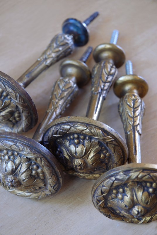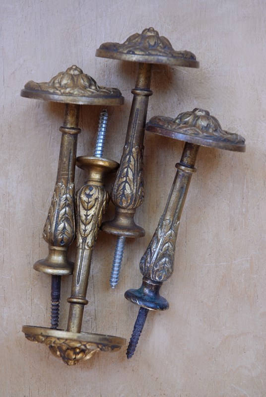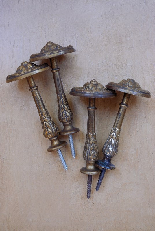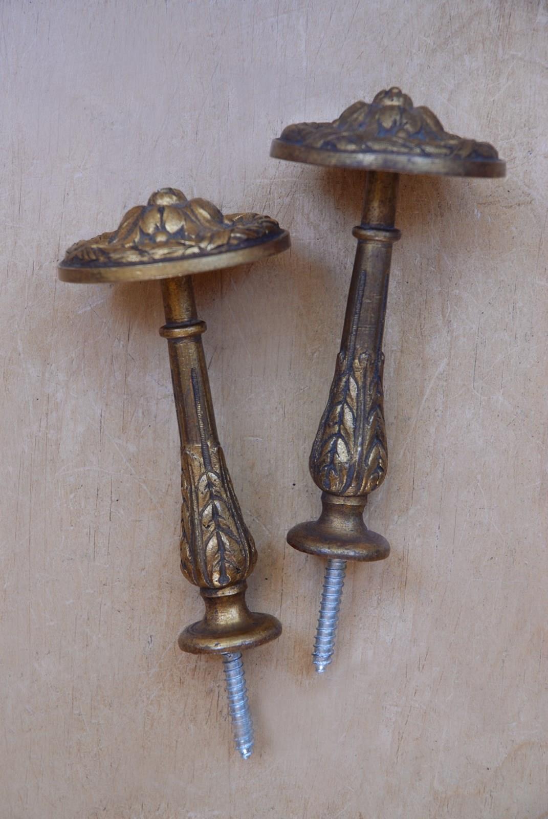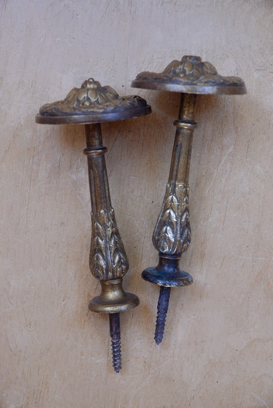 Quality, original antique pairs of French curtain tie backs. Dating from the 1800’s these are in a very intricately designed cast brass, with a wonderful and original gilded finish. Designed to be wall mounted, with a screw fitting to the backs. Beautiful decorative feature for your curtains or drapes. The price is for both pairs.