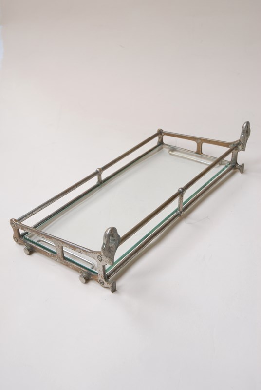 In very good condition, having been sensitively restored to still reflect the age of the piece. Some of the nickel plate has worn to reveal the brass underneath. There is the tiniest of chips to one glass corner, see last photo. I wanted to keep the original shelf, though it would be straightforward to have another cut at a glaziers.