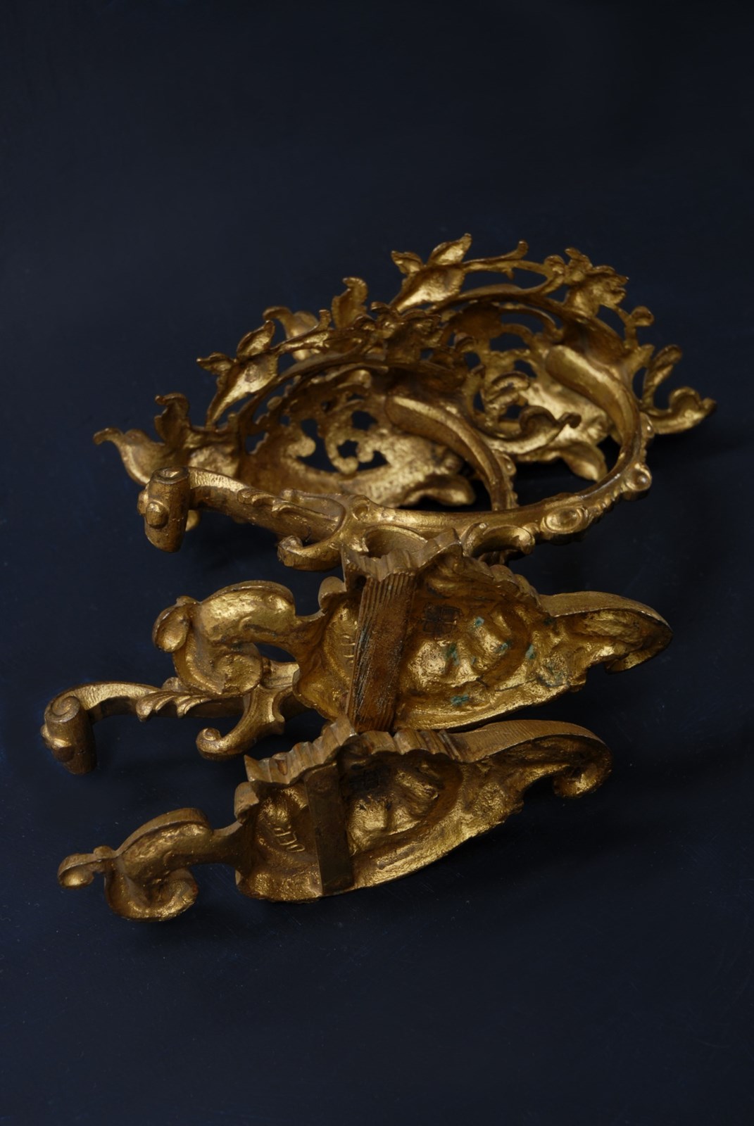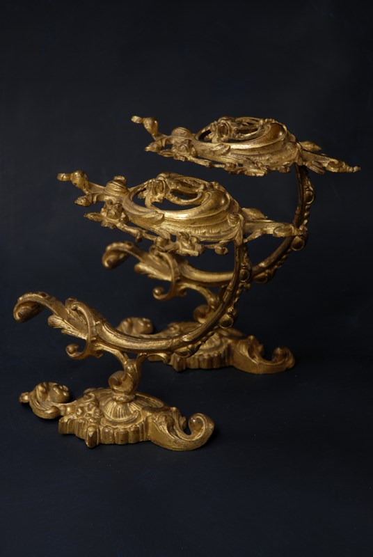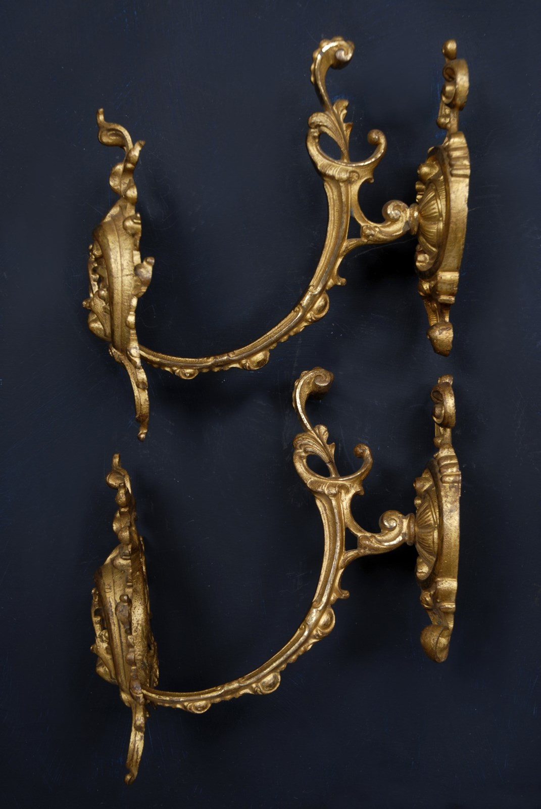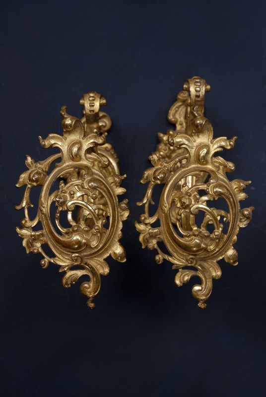 Description: Quality, original antique pair of French curtain tie backs. Dating from the 1800’s these are in a very intricately designed cast brass, with a wonderful and original gilded finish. Designed to be wall mounted, with a strip across the back which can slot onto a flush mounted bracket. Beautiful decorative feature for your curtains or drapes.