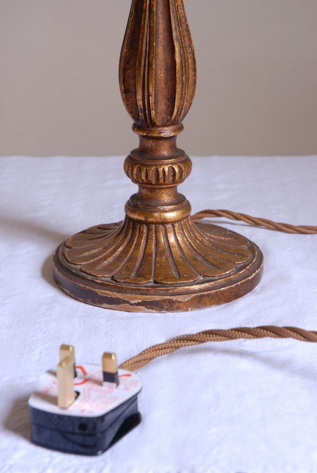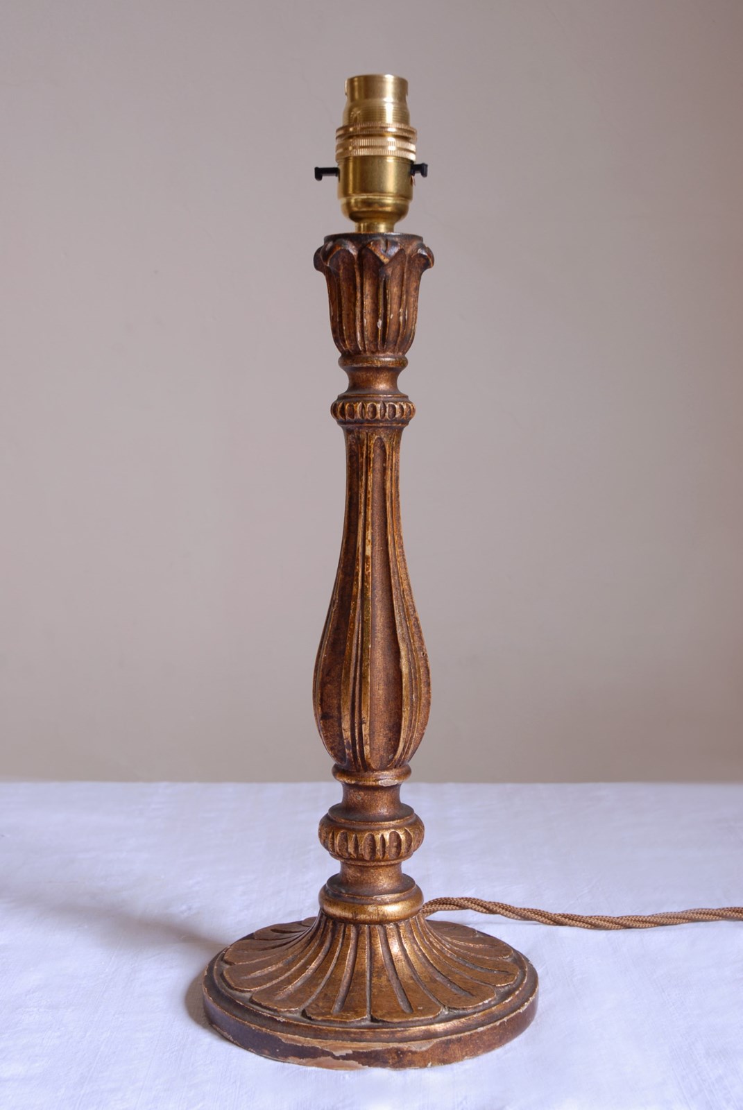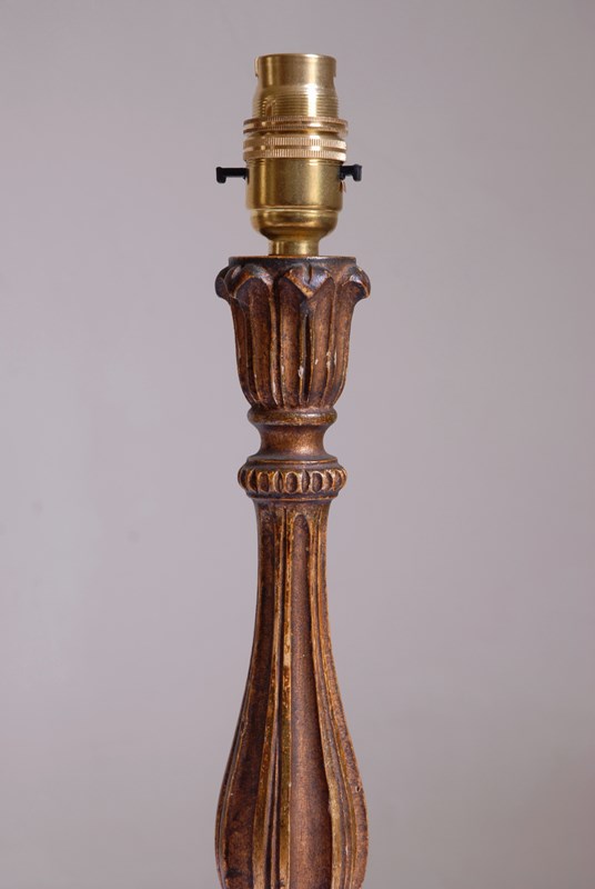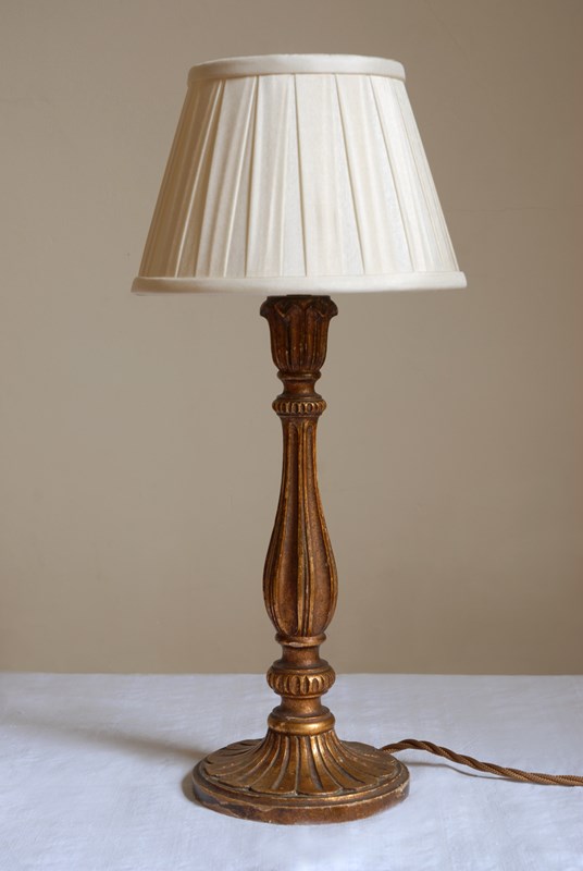 Charming vintage Italian polychrome lamp, with bronze gilding painted upon carved wood.