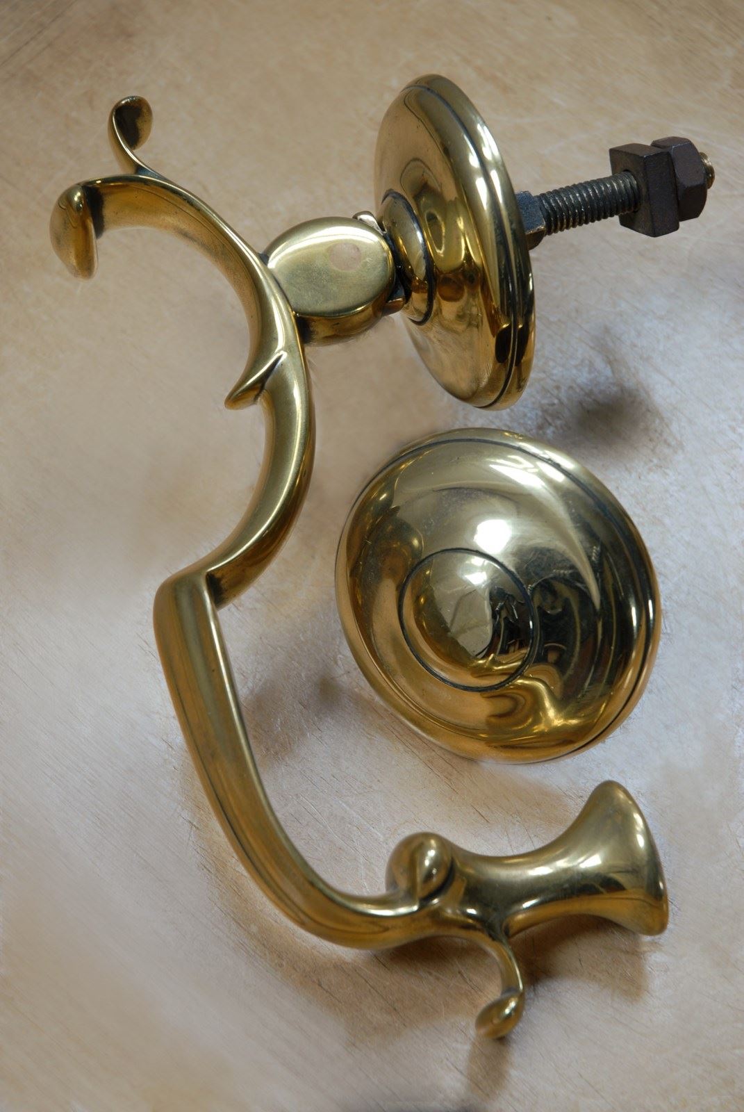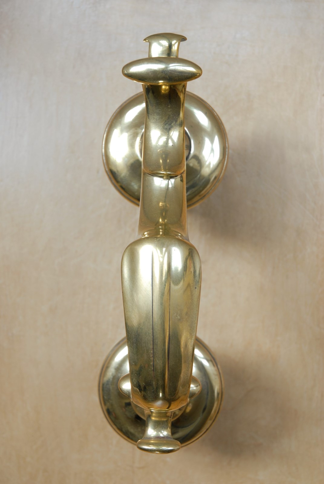 Description: Original Victorian door knocker, complete with its original strike plate. The cast brass doctors door knocker dates to the late 1800’s. This one is large in scale with a good loud knock.