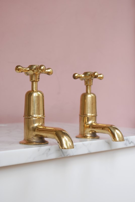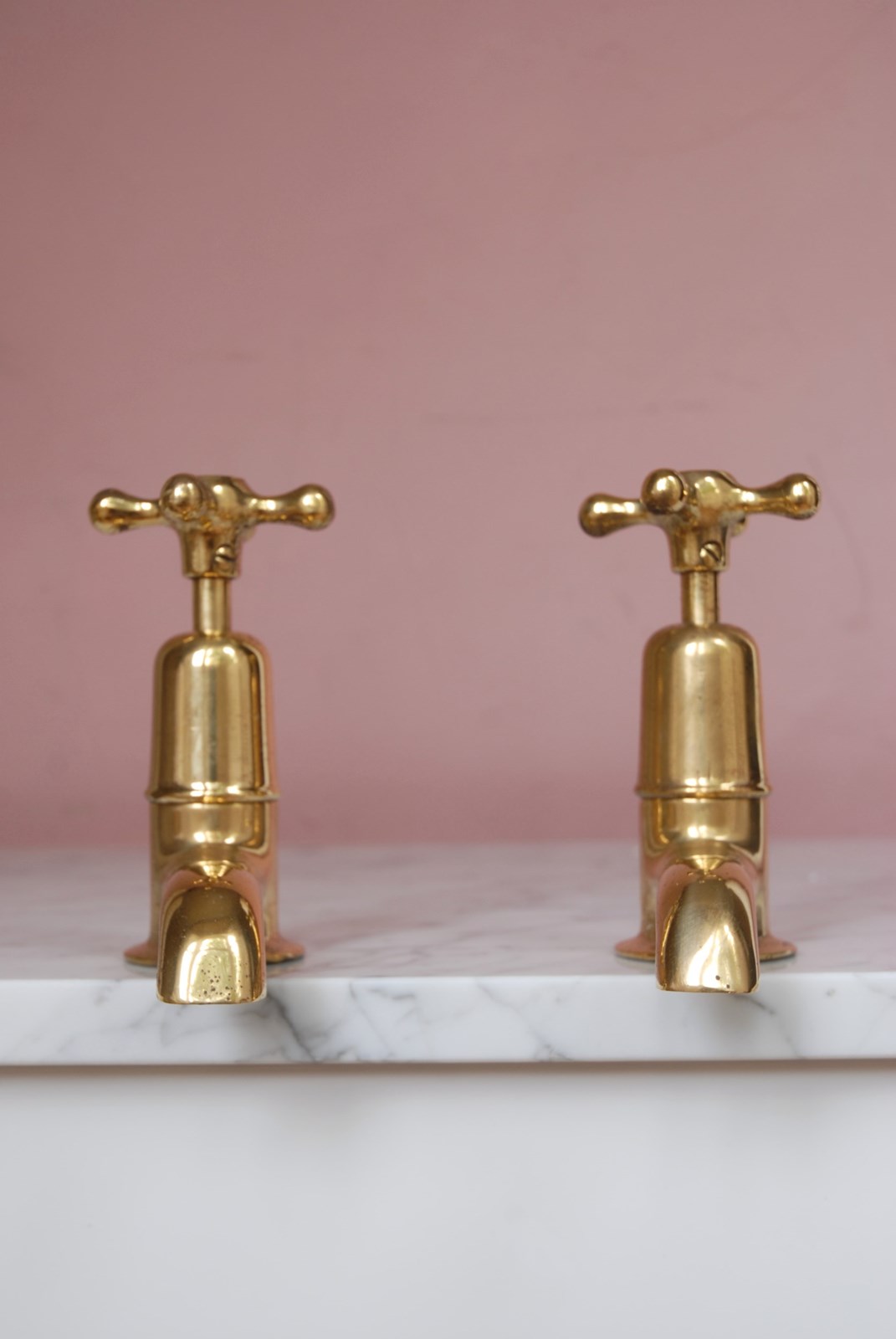 Condition: Very good. Slight signs of wear from age and use. These taps have been fully restored and refurbished with new washers fitted and tested to mains pressure. The brass is unlacquered and a gentle polish occasionally will be needed to maintain this level of shine. These taps are fully compatible with modern plumbing.